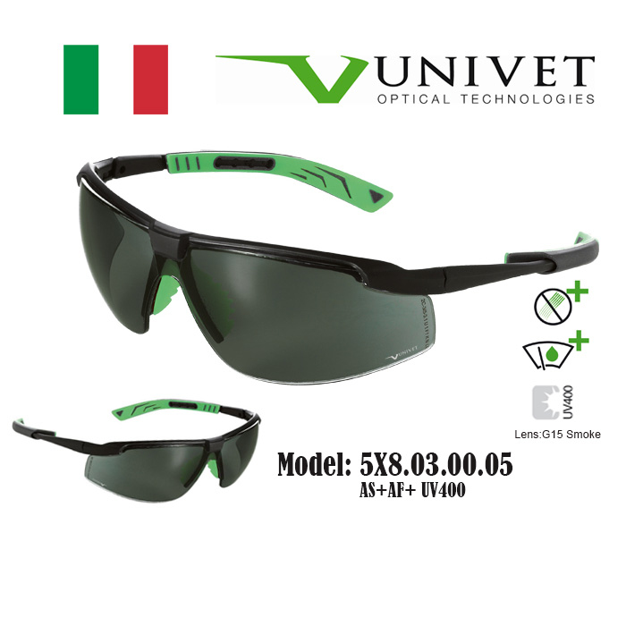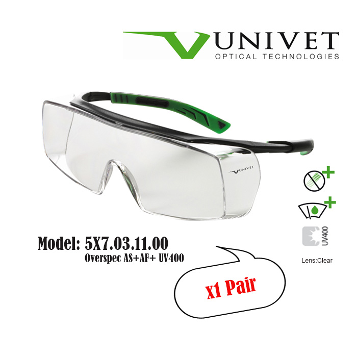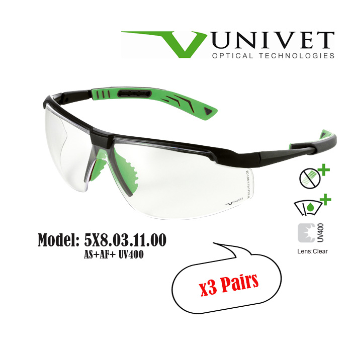Univet 5X7,5X8 safety eyewear, spectacles for eye protection, adjustable specs, overspec OTG, impact resistant, anti-scratch, anti-fog, UV400 resistance, DIY, paintball, fishing, Gardening, Warehouse,
