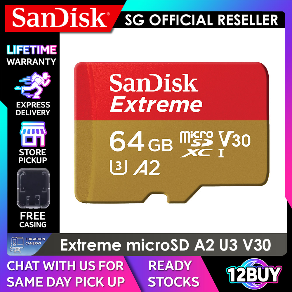 SanDisk Extreme microSD Card Full 4K V30 U3 UHS-I C10 32GB 100mb/s 64GB 170MB/s 128GB 256GB 400GB 512GB 1TB 190MB/s 160mb/s QXAF QXAH QXAA QXAV 12BUY.MEMORY