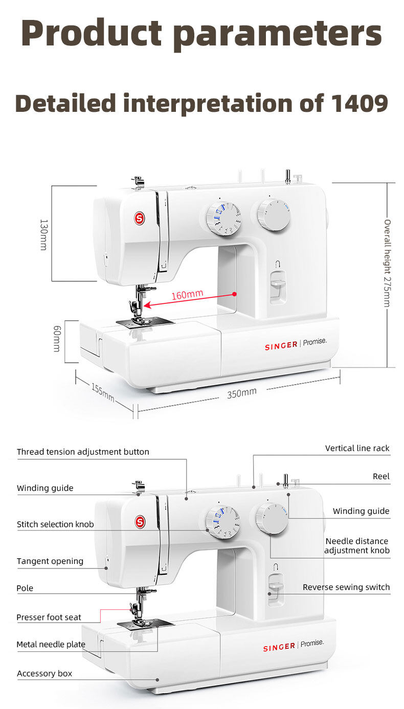 Singer Sewing Machine 1409 PROMISE Multi-functional Household Electric High power portable high speed original with pedal