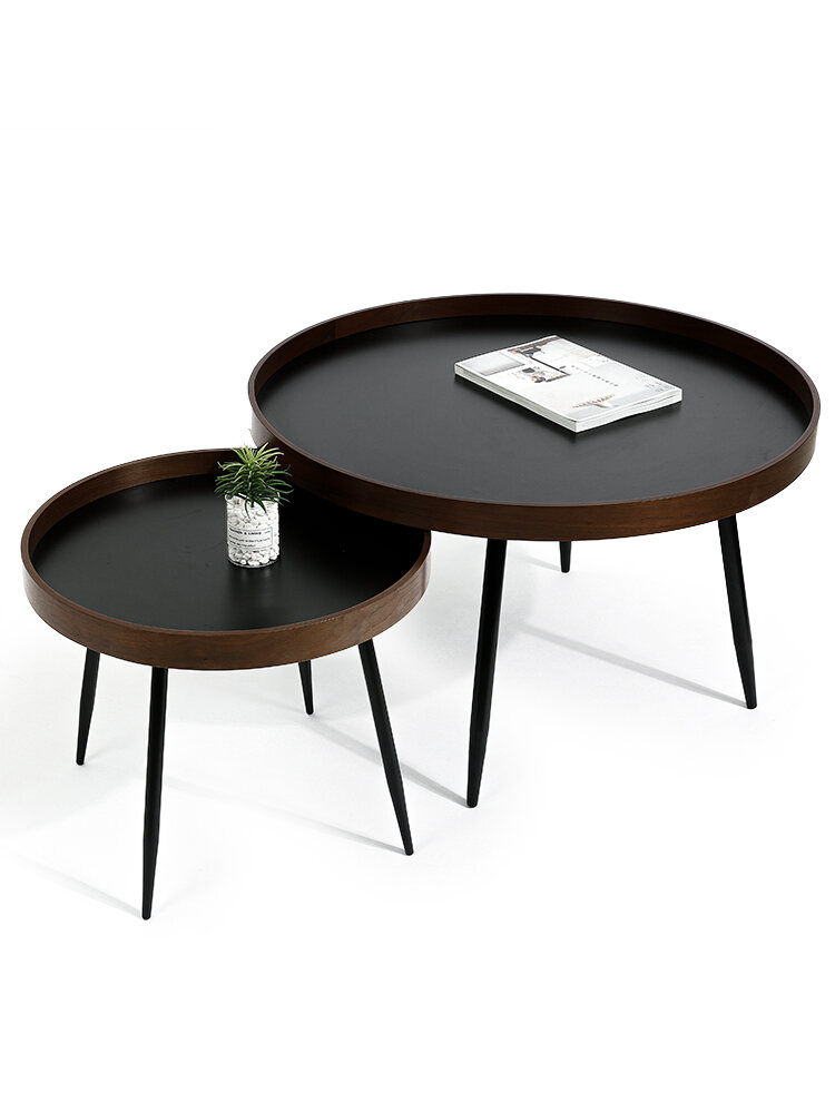 Italian Walnut round Combination Coffee Table Small Apartment Living Room Side Table Light Luxury Balcony Ins Style Nordic Simple