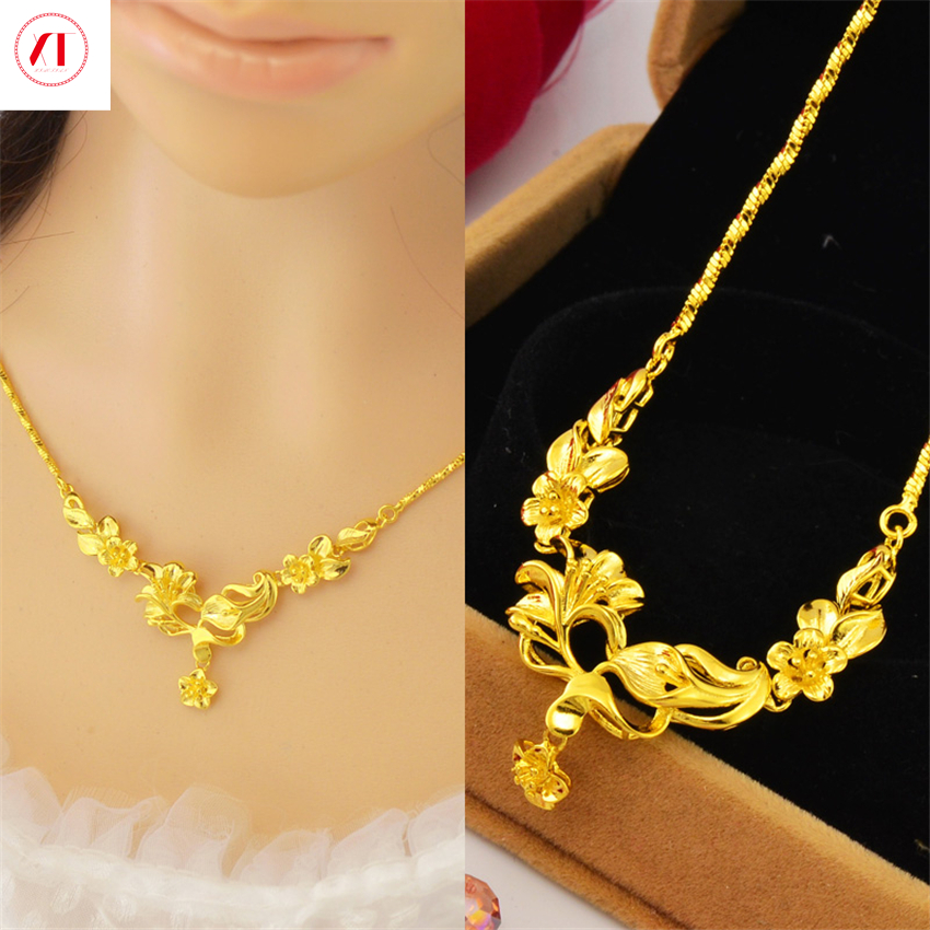 XT Jewellery Korea 24k Necklace Flower Chain Wedding Gold Plated