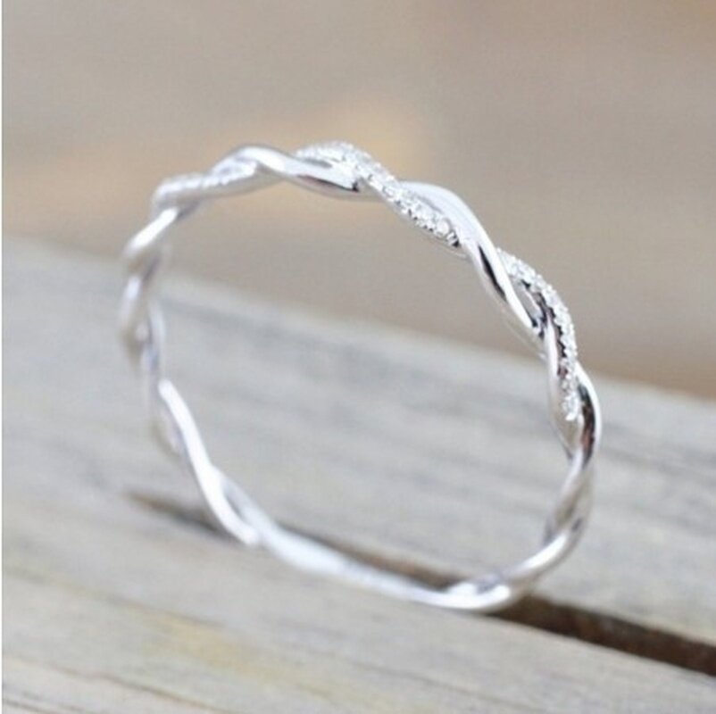 18k Gold Twisted Delicate Diamond Ring Engagement Ring Diamond Anniversary Twined Vine Simple Infinity Eternity Ring Bridal Women Promise Ring Anniversary Gold Wedding Bands Size 4-12