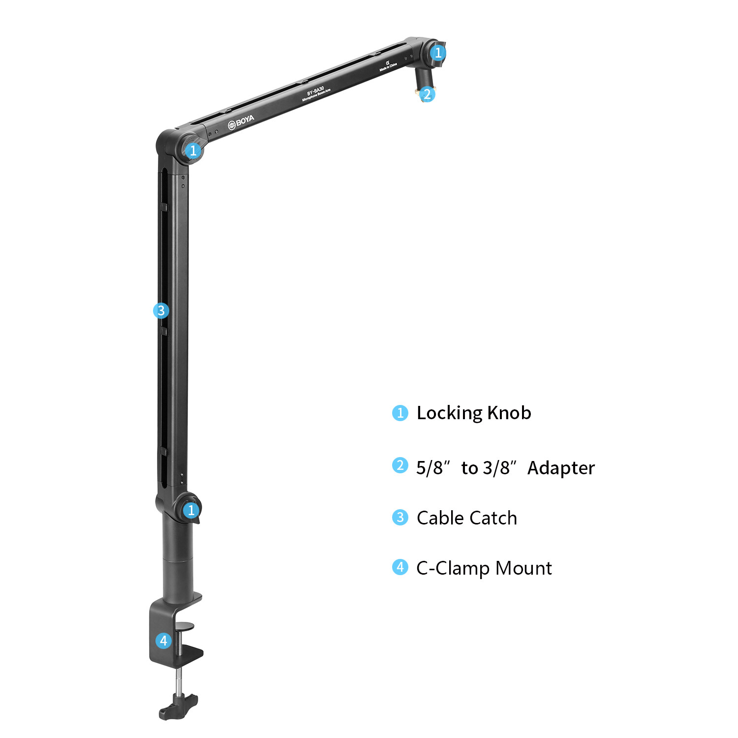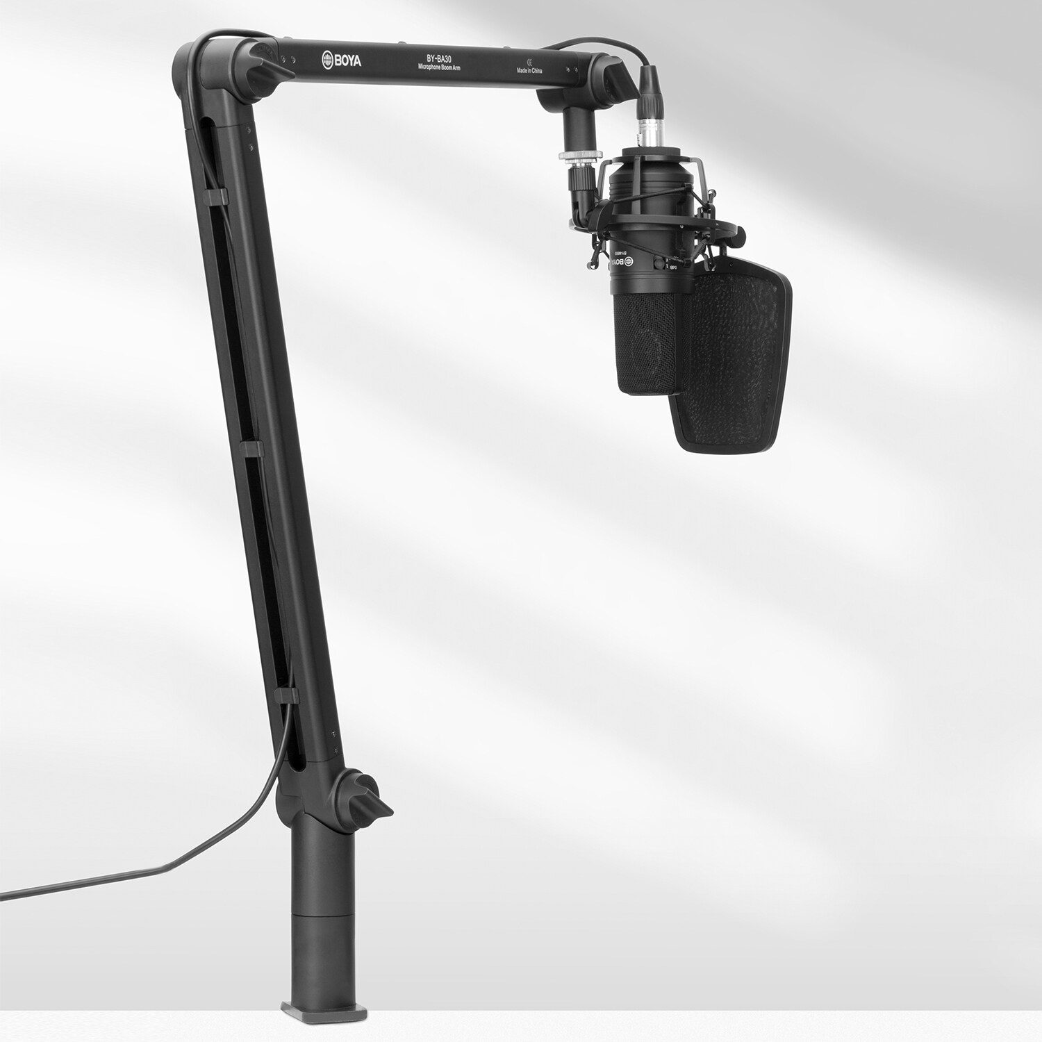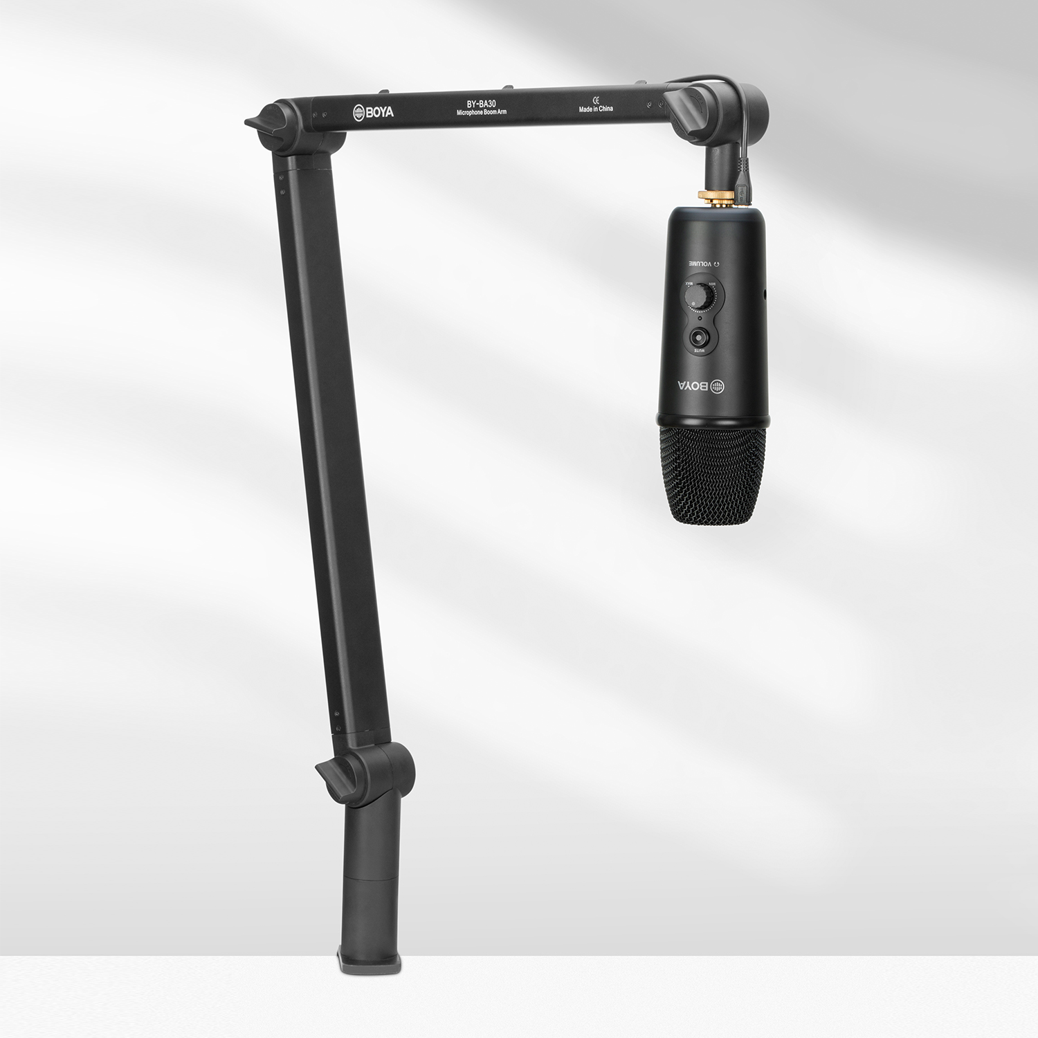 The BOYA BY-BA30 is a microphone boom arm, giving users with experience improvements when using their microphone. It can provide a maximum arm reach of 17" (horizontallength)/ 26" (vertical height). The boom arm can be attached to a desk via its C-clampmount , which can offers a stable placement on desktop operation.