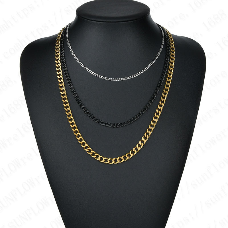 Men's Necklace Stainless Steel Cuban Link Chain Silver Color Male Jewelry Gifts For Men 3COLORS None