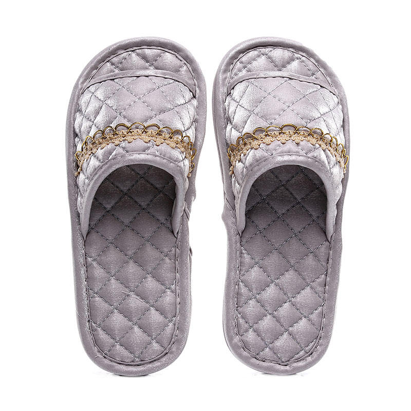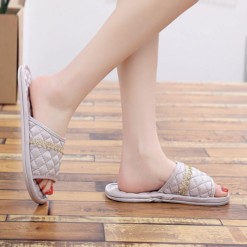 New European-Style Satin Fabric Cloth Bottom Non-Slip Particle Slippers Floor Mute Home Indoor Couple Spring and Summer Four Seasons
