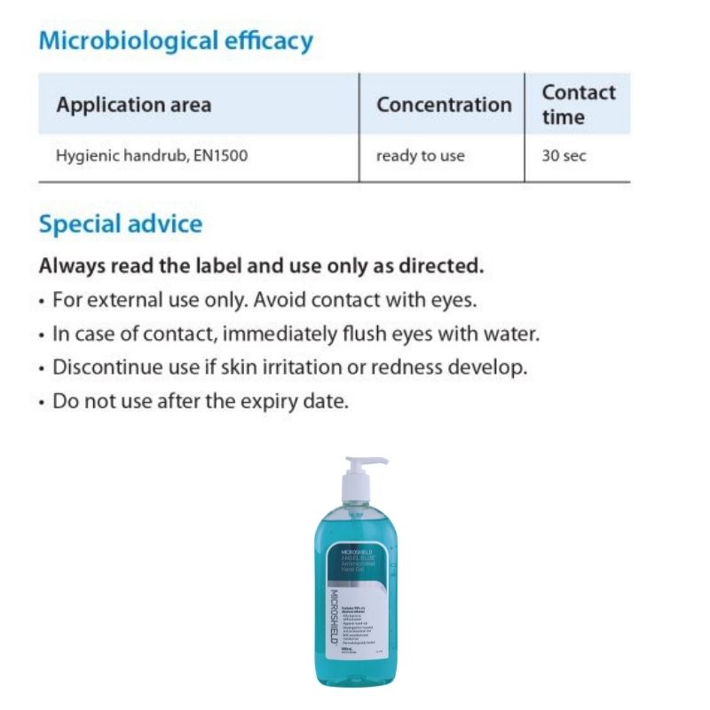 Schulke Microshield Angel Blue Antimicrobial Hand Gel 500ml Hospital Grade Sanitizer[Exp Date : 28/2/2024] [Aurigamart Authorized Distributor]