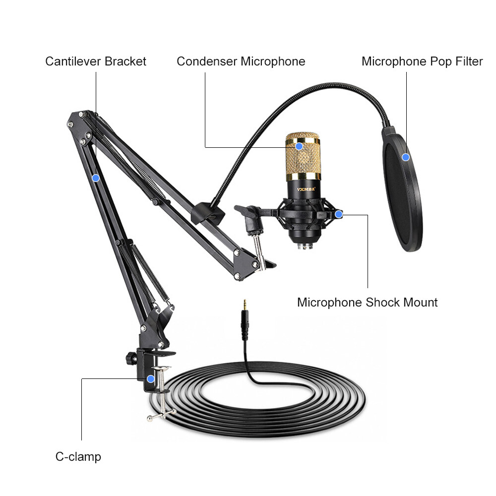 Microphone Shock Mount: perfectly fit the microphone, help to eliminate noise , prevent vibration and shocking, and protects the microphone all-around during recording.