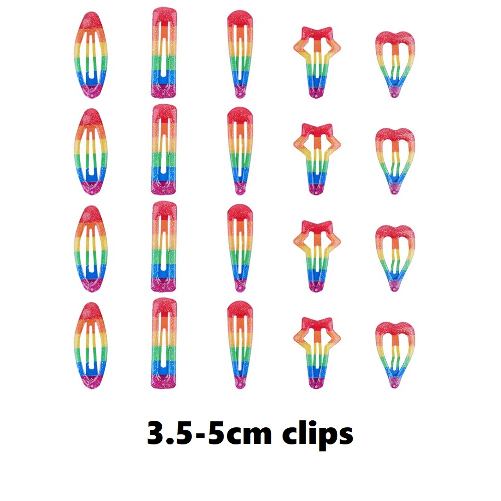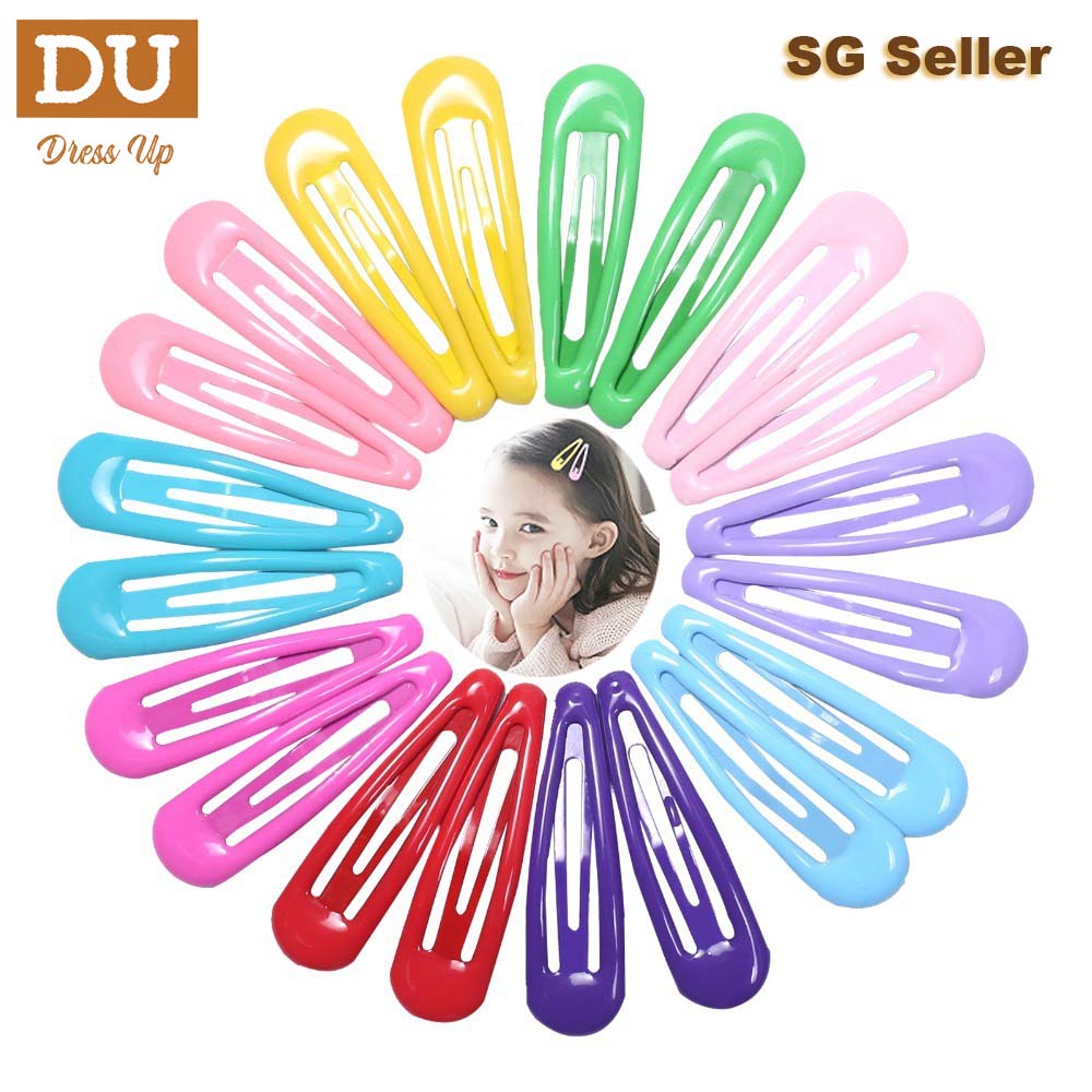 [SG | Safely Coated] 20pc 5cm Colorful Glossy Snap Prong Clips Non-Slip Hair Clips Barrettes for Kids Girls Ladies Women, in Drop & Rectangle Shape