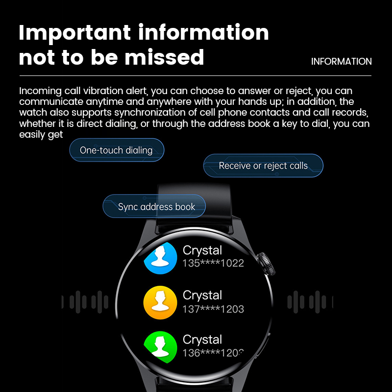 Uonevic Smartwatch Watch 3 1.28inch Full Touch Colorful Screen Bluetooth Call Long Standby Smart Watch for Men Women for IOS Android for huawei Watch 3 Pro