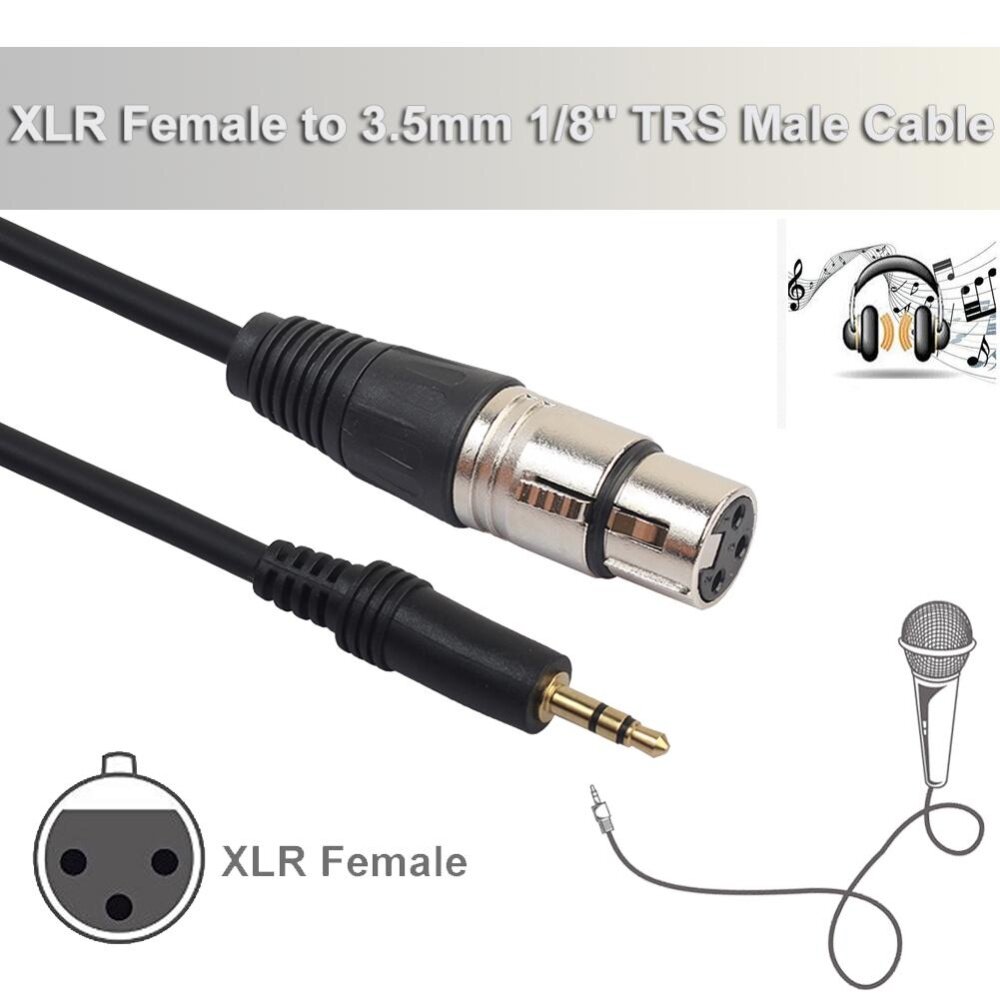 3Pin XLR Female to 3.5mm TRS Male Cable Audio Adapter Microphone Cable Extension Wire Cord for Phone Mixer CD Player Description: This cable is designed to connect a stereo microphone with a single XLR output to a 3.5mm jack stereo input. It is mainly used for mobile phones, computers, mixer, live equipment and microphone connection.