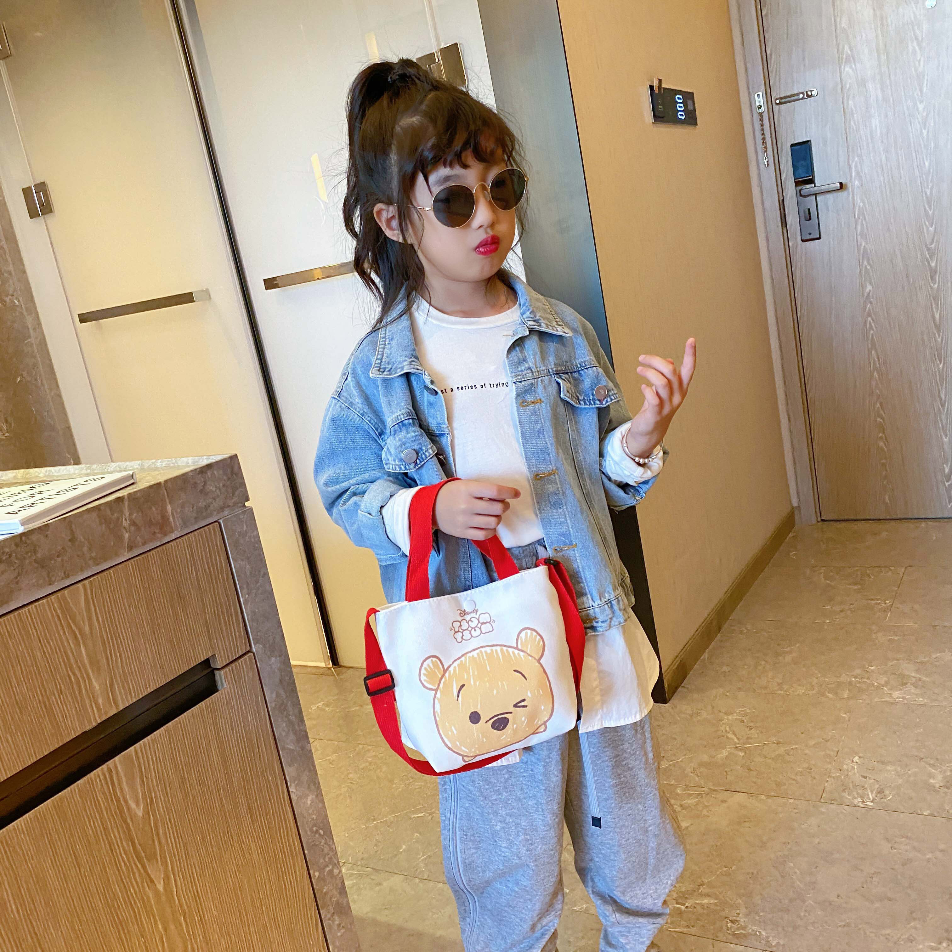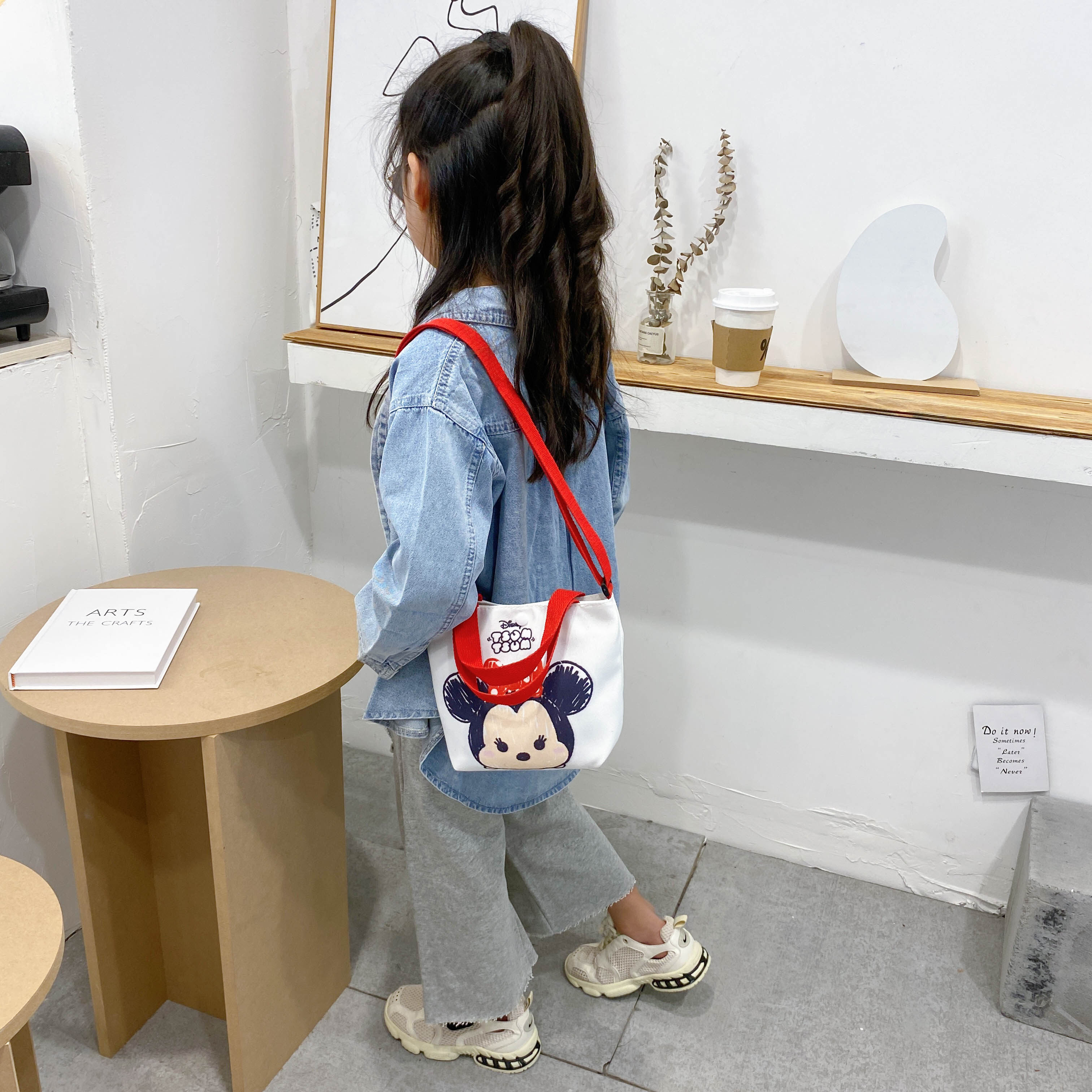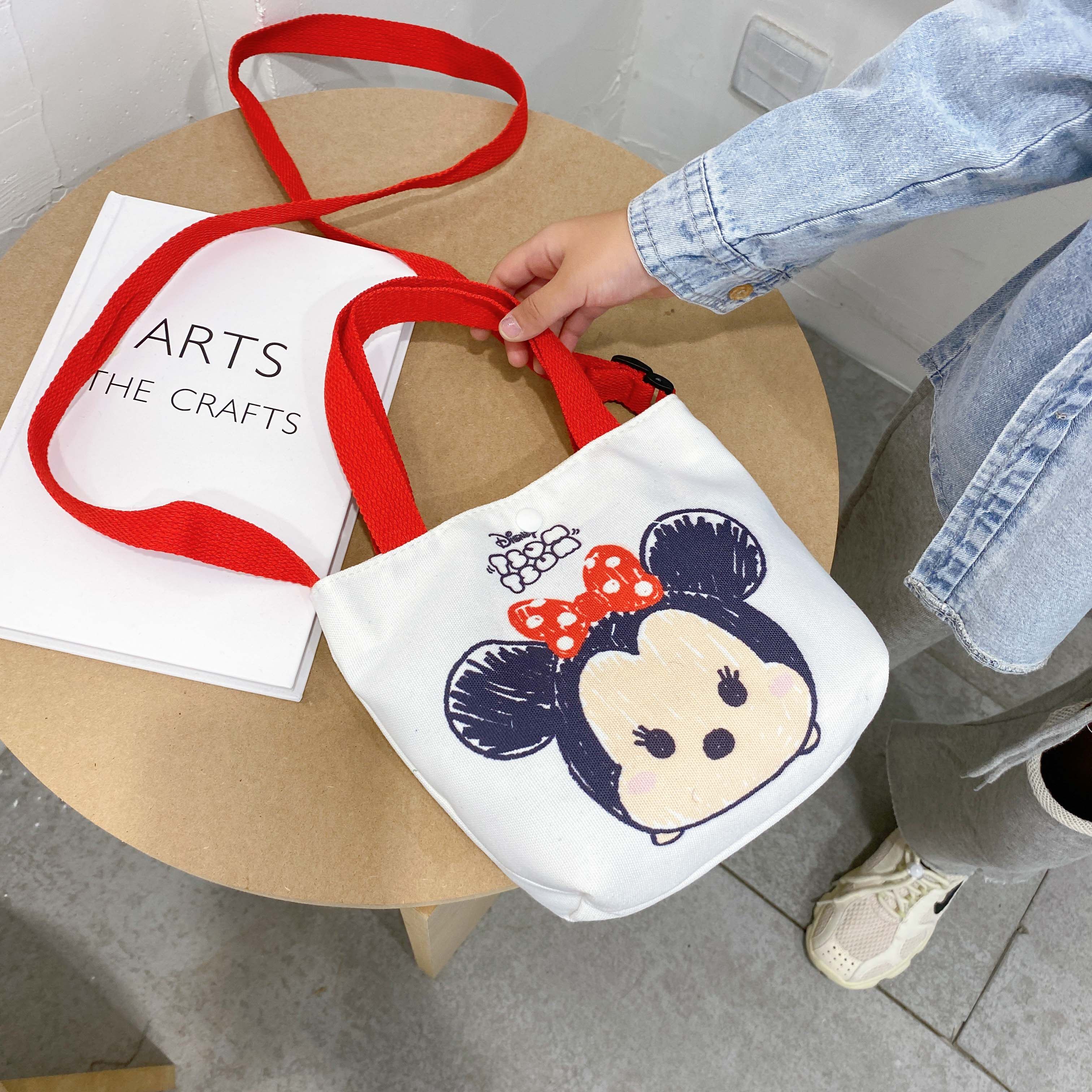Korean Children's Bag Cartoon Lovely Canvas Bag Ins Fashion Girl Leisure Single Shoulder Bag Mickey Mouse For Kids Girls
