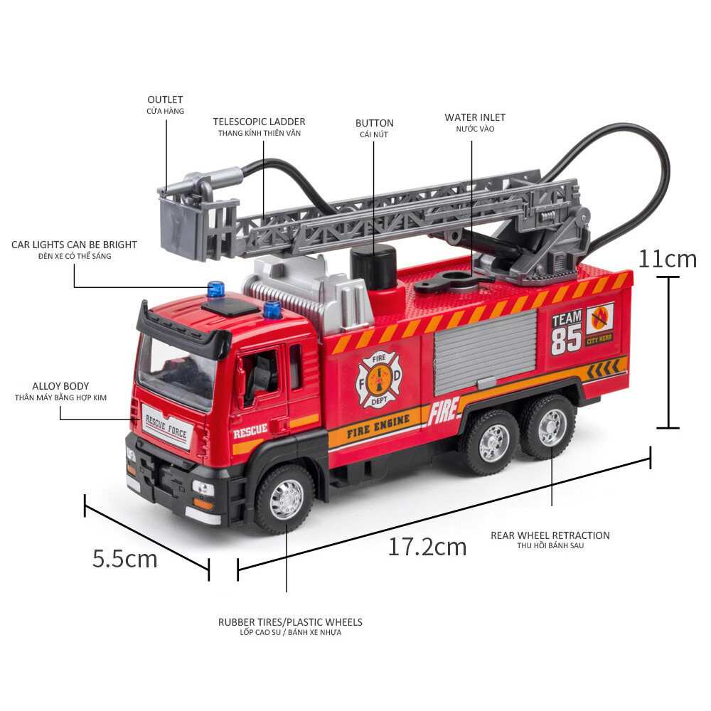 LEO 1:32 Water spray fire-fighting ladder truck alloy model car for kids toys for boys toys for kids cars toys