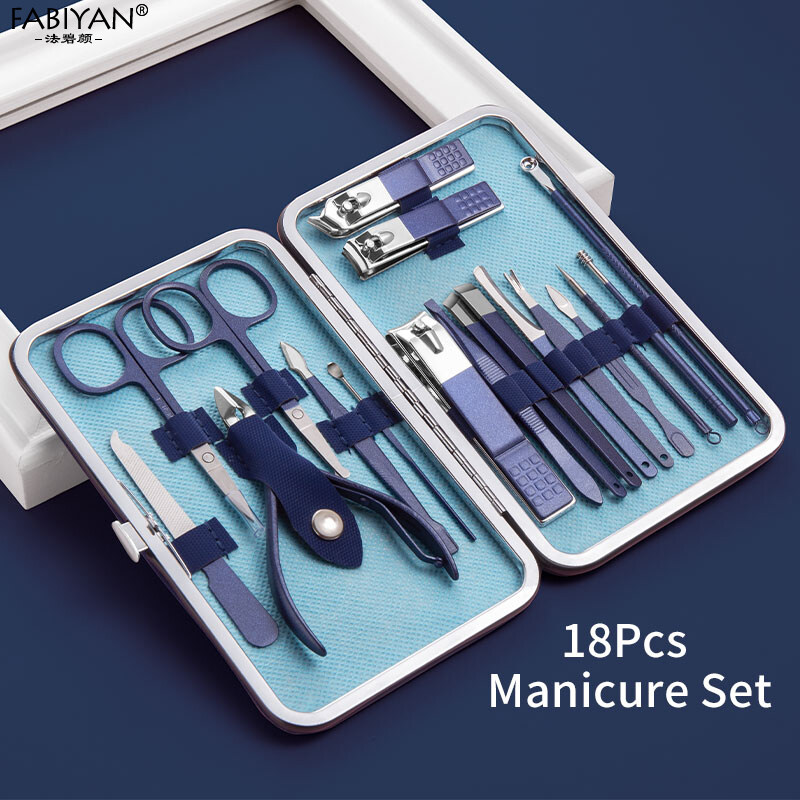Manicure Kits 18/20/26 Pcs Stainless Nail Art Tools Kits Steel Nail Clipper Cutter Trimmer Nail File Scissor Ear Pick Grooming Kit Manicure Set Pedicure Toe Tools Use For Hand Foot Face