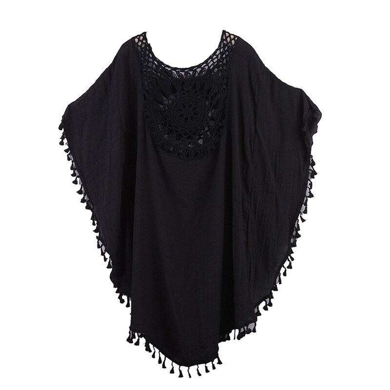 Lovely Beach Cover Up for Women Fashion Sexy Women Hollow Big V-Neck Short Sleeves Irregular Fringe Bikini Beach Outfits