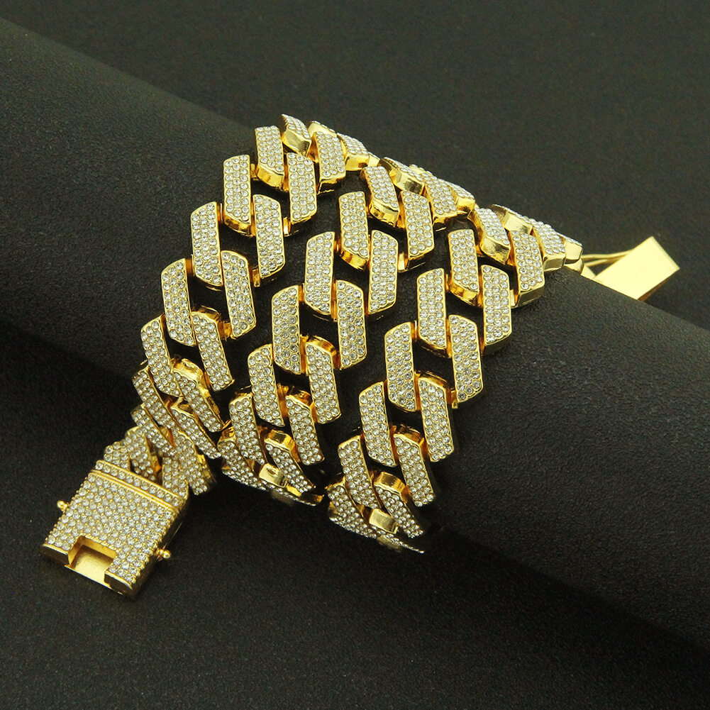 CLIBER Hip Hop 19MM 3 Row Heavy Cuban Prong Chain Bling Iced Out Box Buckle Copper Setting AAA+ Cubic Zirconia Chain For Men Jewelry