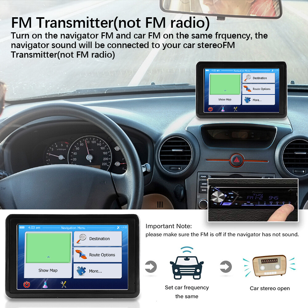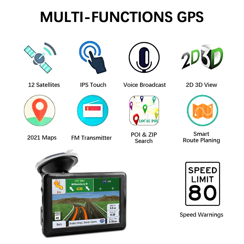 Features:1. [Lifetime free map update] Pre-installed detailed latest maps in 2022, lifetime free updates, maps of the purchased countries are pre-installed before the product is released, including the United States, Canada, and Mexico. If you want to update the map or need maps for other countries, please contact us and we will give you the download address and guide. (The operation changes the country according to the corresponding sales country, if you have any questions, please contact the development)2, [Performance upgrade] The GPS satellite navigation system is equipped with a high-performance CPU, uses a 1200mah polymer battery, built-in 8GB ROM 256MB RAM, supports a maximum of 32G expansion memory, and has enough space for you to store maps and data. Equipped with car charger, USB cable (can be charged indoors), suction cup bracket, back clip, instruction manual (excluding SD/TF card)3, [Intelligent voice broadcast and 7-inch touch screen] GPS navigation system has a voice navigation system (multi-language version), comprehensive voice prompts and safe navigation direction guidance, inform speed limit and estimated time of arrival, intelligent error correction. Let you reach your destination faster, safer and more accurately. 7-inch high-resolution touchscreen with 800 x 480 resolution, sharp and responsive4,【Best Navigation】You can choose from more than 30+ languages ​​voices that will speak the directions one by one, so you don't have to stare at the GPS screen all the time. FM boost volume function (without radio): It can transmit the navigation audio to the car stereo, increase the volume of the navigation radio, make it clearer. Make your driving safer, reduce fatigue driving, stay away from fines and enjoy driving.5, [Multi-function] (1) Fast and economical intelligent route planning, (2) Fast and accurate GPS tracking (3) Provides 7 vehicle modes support, car, truck, bicycle, bus, ambulance, taxi, ( 4) Support zip code, address, POI and coordinates, (5) Broadcast of street name, current speed, lane guidance and estimated time of arrivalFunction parameter:Display: 5-inch high-definition TFT touch screenRAM: 8GBResolution: 800*480Cache: 256MExpansion card slot: maximum support 32G TF cardStandard function: AVI/MP4/3GP/MPG/MP3/WMA/FM transmitter/gameBattery: Polymer A-gauge lithium battery 1200MAHProduct packaging:Navigator, cigarette lighter cable, usb cable, suction cup bracket, manual