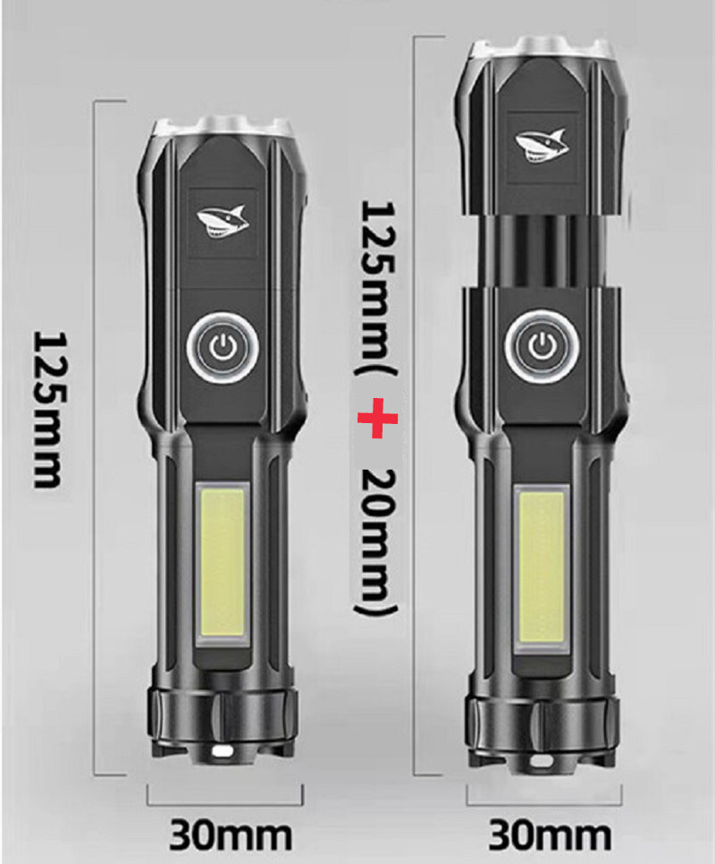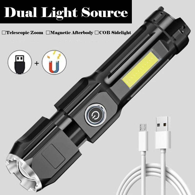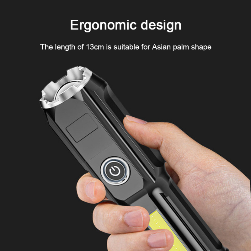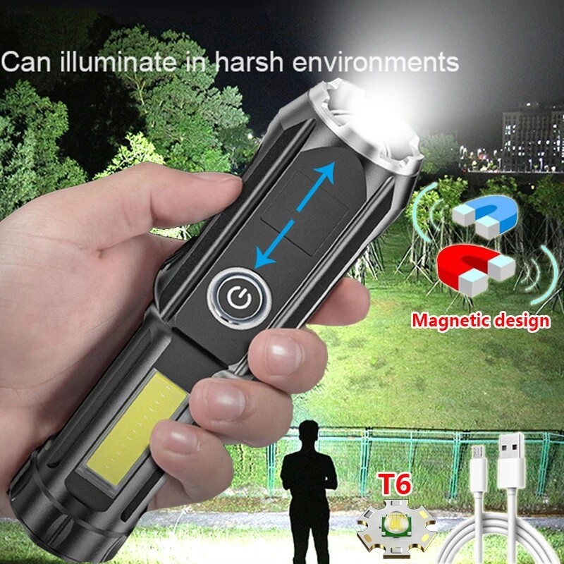 Powerful Zoomable USB Rechargeable Flashlight Super Bright torchlight T6 led flashlights With COB Side Light Portable Camping Light Strong light Torch light