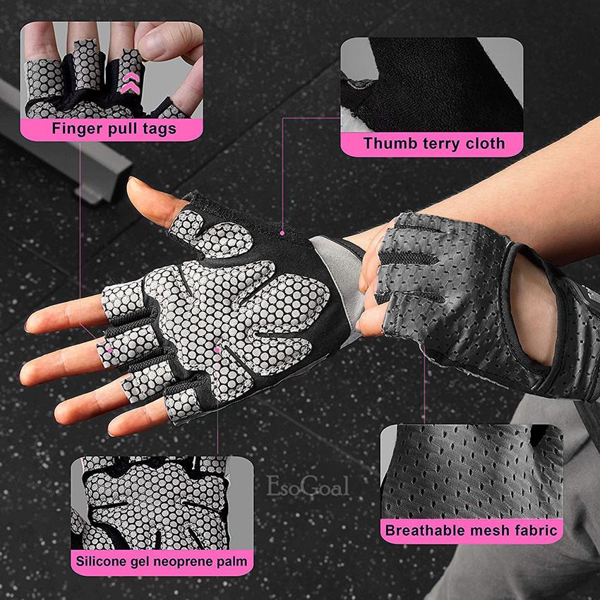 [Promotion!] EsoGoal Gym Fitness Gloves Breathable Fast-Drying Sports Gloves Half Finger Hand Protector Non-slip Silica Gel Grip Workout Gloves Weight Lifting for Women Men Bodybuilding