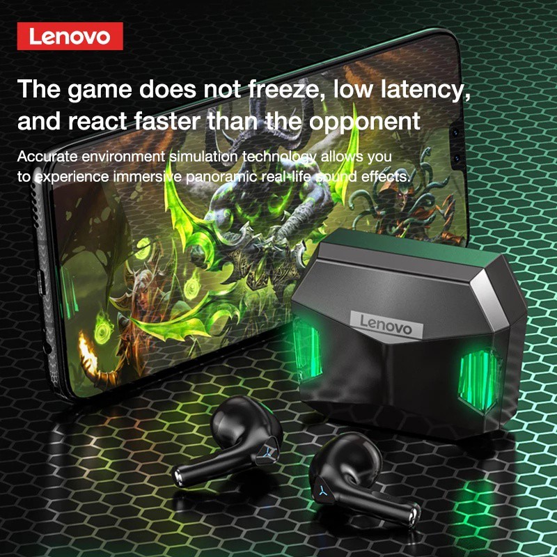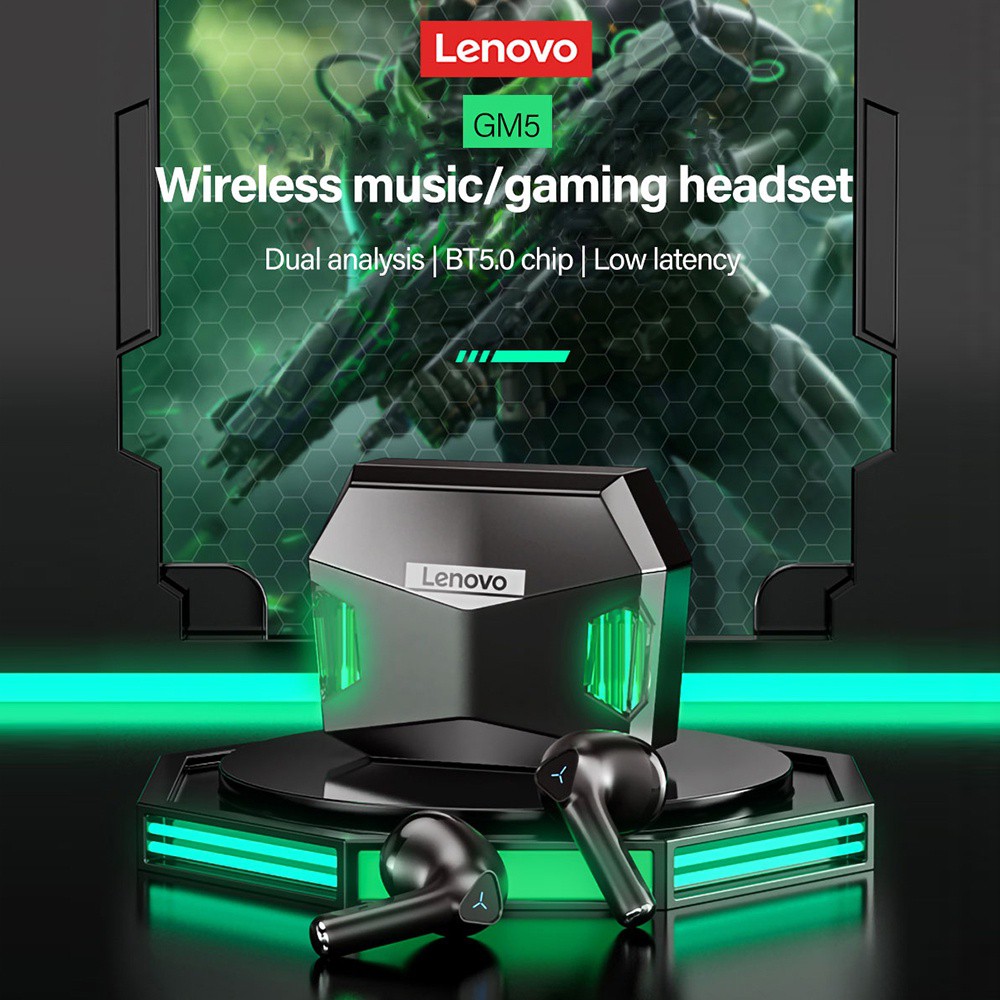 Lenovo GM5 Gaming Low Latency True Wireless Earphone Bluetooth 5.0 Earbuds with HD Stereo Sound with RGB Lights headphone with mic Handfree Earpods earpieces earpod Headset with Microphone audio TWS
