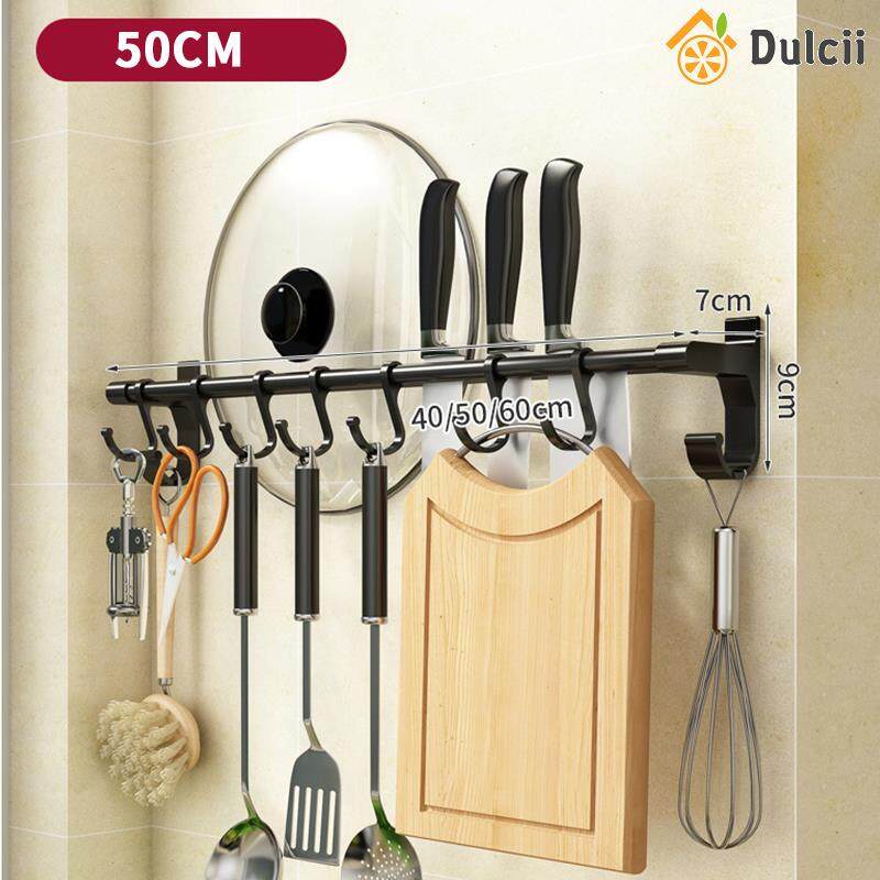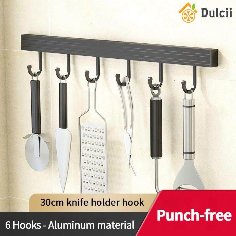 Dulcii 1PCS No Drilling Space Aluminium Kitchen Hooks Rack Multifunction Wall Mount Kitchen Shelf Utensil Holder With Hooks Mug Storage Kitchen Tools Holder Wall Mounted Kitchen Organizer