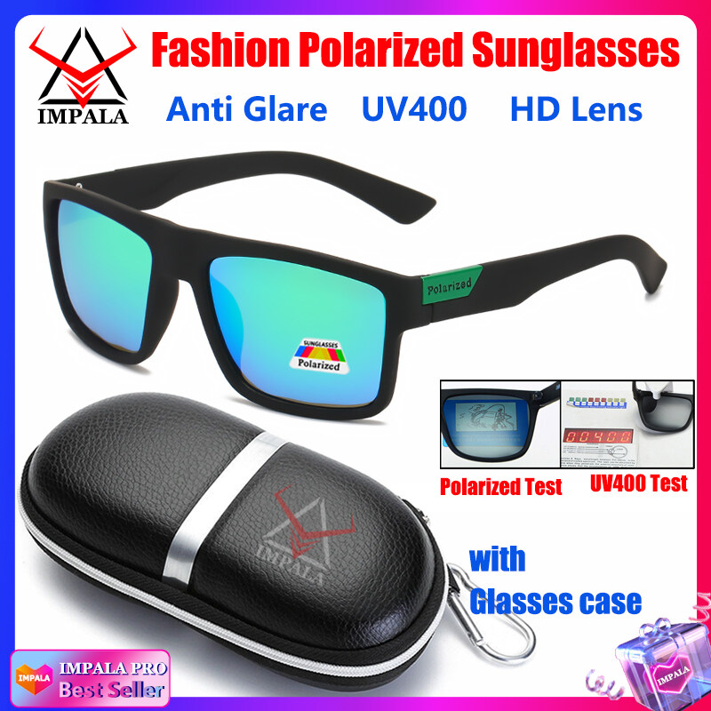 IMPALA PG1660L Fashion Men Women Polarized Sunglasses Anti Glare Driving Fishing Sun Glasses for Men Korean Style Black Spectacles UV400 Lens with Glasses Case