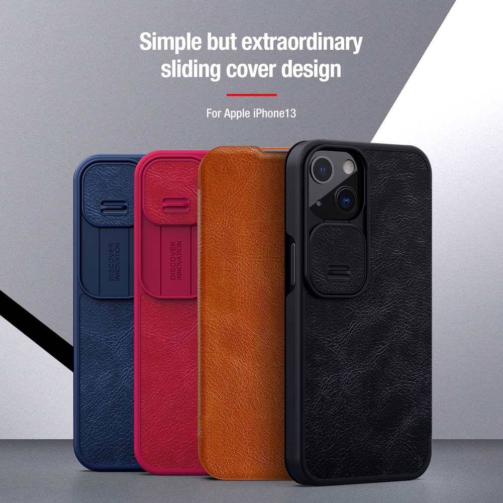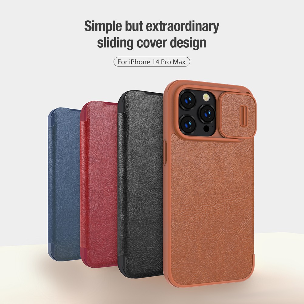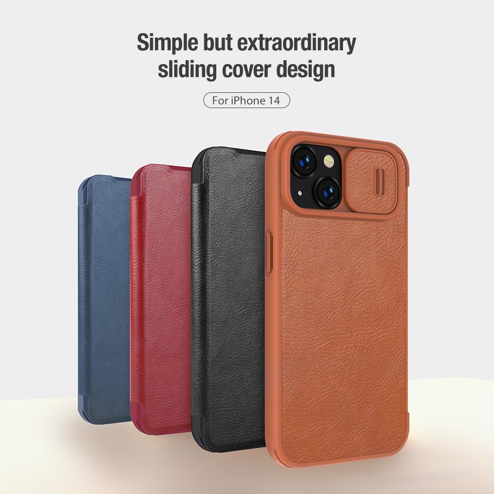 iPhone 15 14 13 / Plus / + / Pro / Max / 6.7 6.1 - Qin Leather Case Pro - Flip Casing Full Coverage Wallet Card Slot Sliding Camera Protection Shock Resistant High Quality Lens Anti Scratch Drop Impa