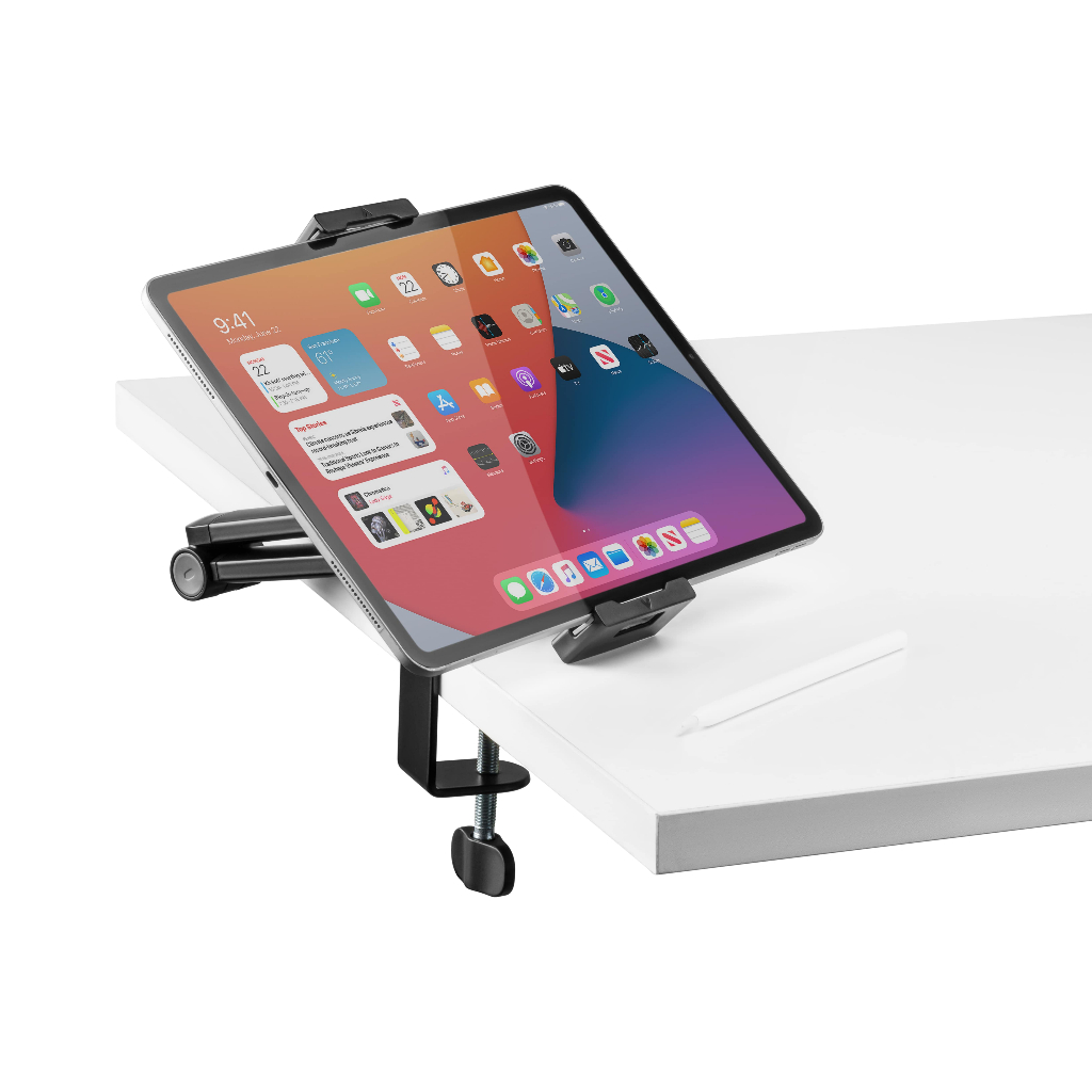 ULTi Clamp-on Tablet Holder for 4.7 to 12.9 inch Screens - Ergonomic Design: Swivel, Tilt & Rotate