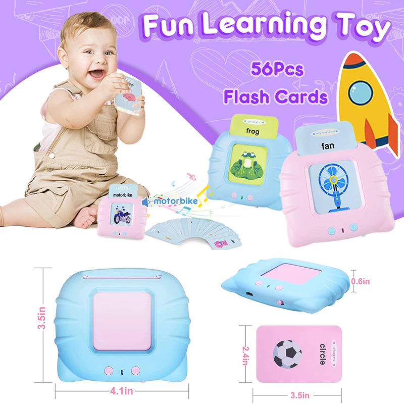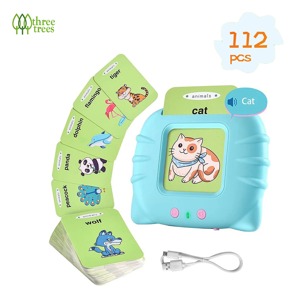 threetrees flash card reader kids toys smart english speaker for 2-7 Years Old, Speech therapy toys early education card reader English And Chinese listening and reading audio toys For Kids Girl