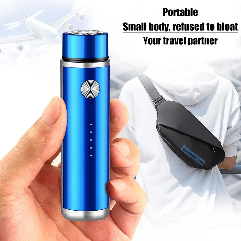 KIPRUN Mini USB Rechargeable Electric Shaver Stainless Steel Shaving Machine Men 3D Floating Blade Razor Washable Razor Travel Shaver (Blue)