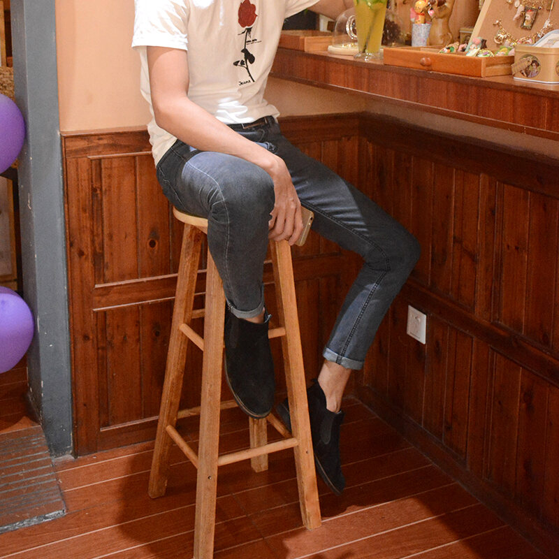 Ladder Stool Home High-Leg Stool Solid Wood High-round Stool Fashion Creative Bar Stool Bar Stool Modern High Chair High Bench
