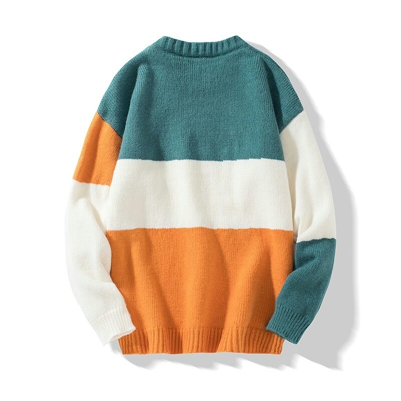 Autumn and Winter Japanese Style Thickened Color Matching Loose round Neck Sweater Men's Korean Style Idle Style Versatile Student Sweater Ins