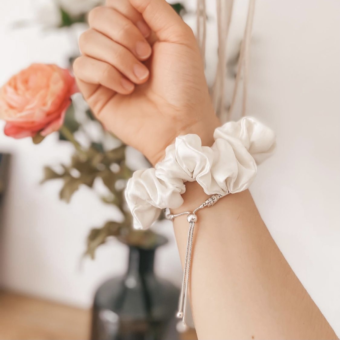 [SG ✨ Medium]100% Authentic Mulberry Silk Scrunchies - 19 Momme Hair Ties Premium Hair Ropes Hair Bands Elastics Ponytail Holders for Women Girls Hair Accessories, No Hurt to Your Hair, Dress Up