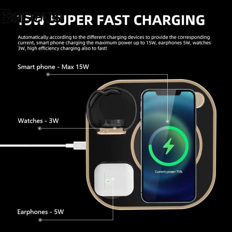 Baseus X3 Magnetic Wireless Charger for Mobile Phone Watch Headset 15W 3 in 1 Multi-Function Fast Charging Station