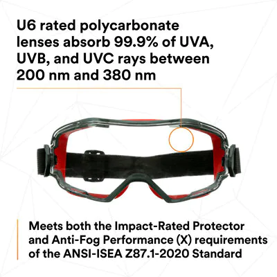 3M Safety Goggles - Scotchgard GoggleGear 6000 Series (Red Shroud) - Fits Over Glasses Anti-Fog & Anti-Scratch Coated Performance Eyewear