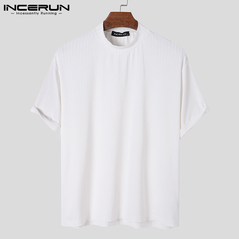 INCERUN Mens Short Sleeve Knitted T Shirts Casual Loose Fit Blouse Undershirt (Korean Style)
