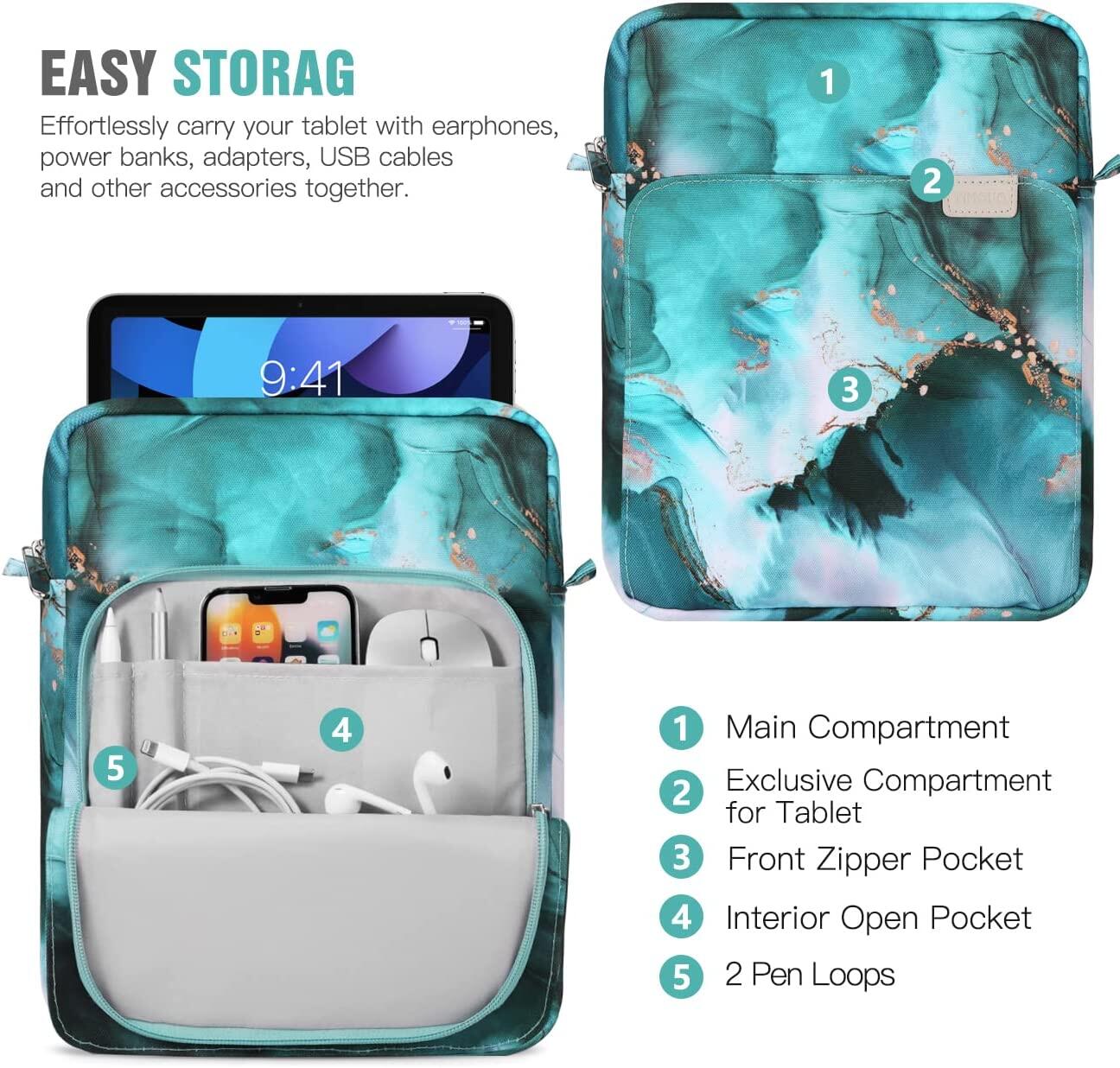 MoKo 9-11 Inch Tablet Sleeve Bag Carrying Case with Shoulder Strap for IPad Pro 11 2021-2018, IPad Air 5/4 10.9, IPad 10.2, Galaxy Tab A8 10.5/Tab S8 11"/Tab A7 10.4, Surface Go 2/1