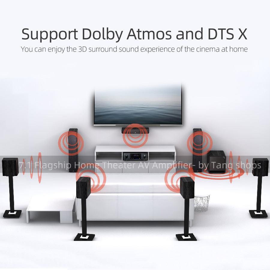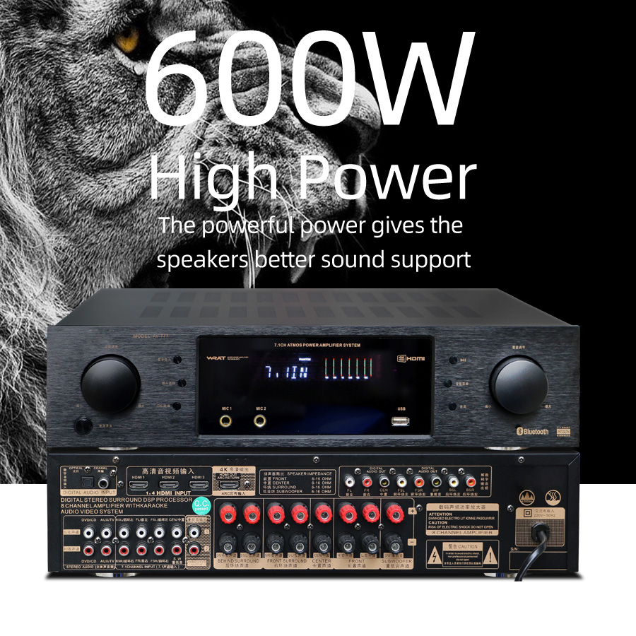7.1 Home Theater AV Flagship Receiver 600W High Power Amplifier 3D Surround Sound Support Dolby Atmos/Dolby TrueHD/Dolby Digital Plus/DTS X/DTS-HD, Powerful 7.1 Speaker and Decoding Audio Output, 4K H