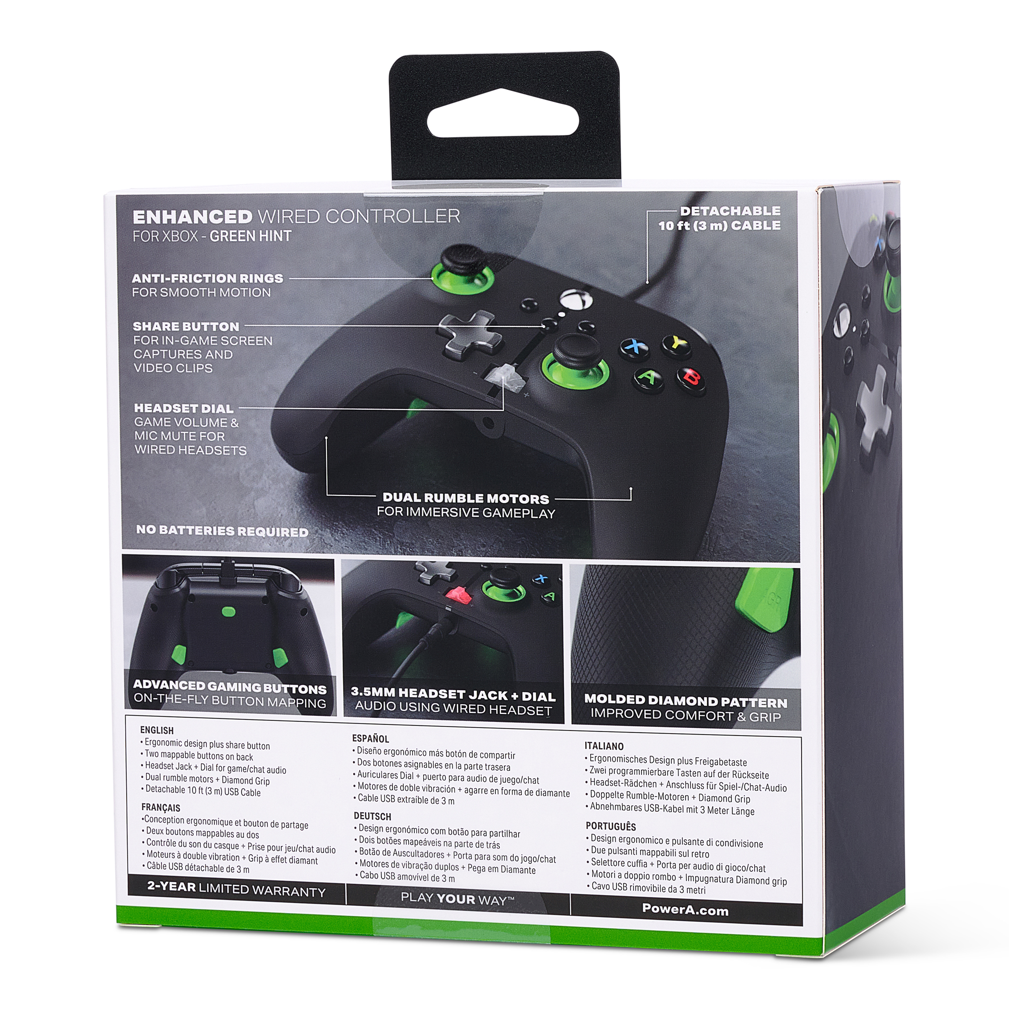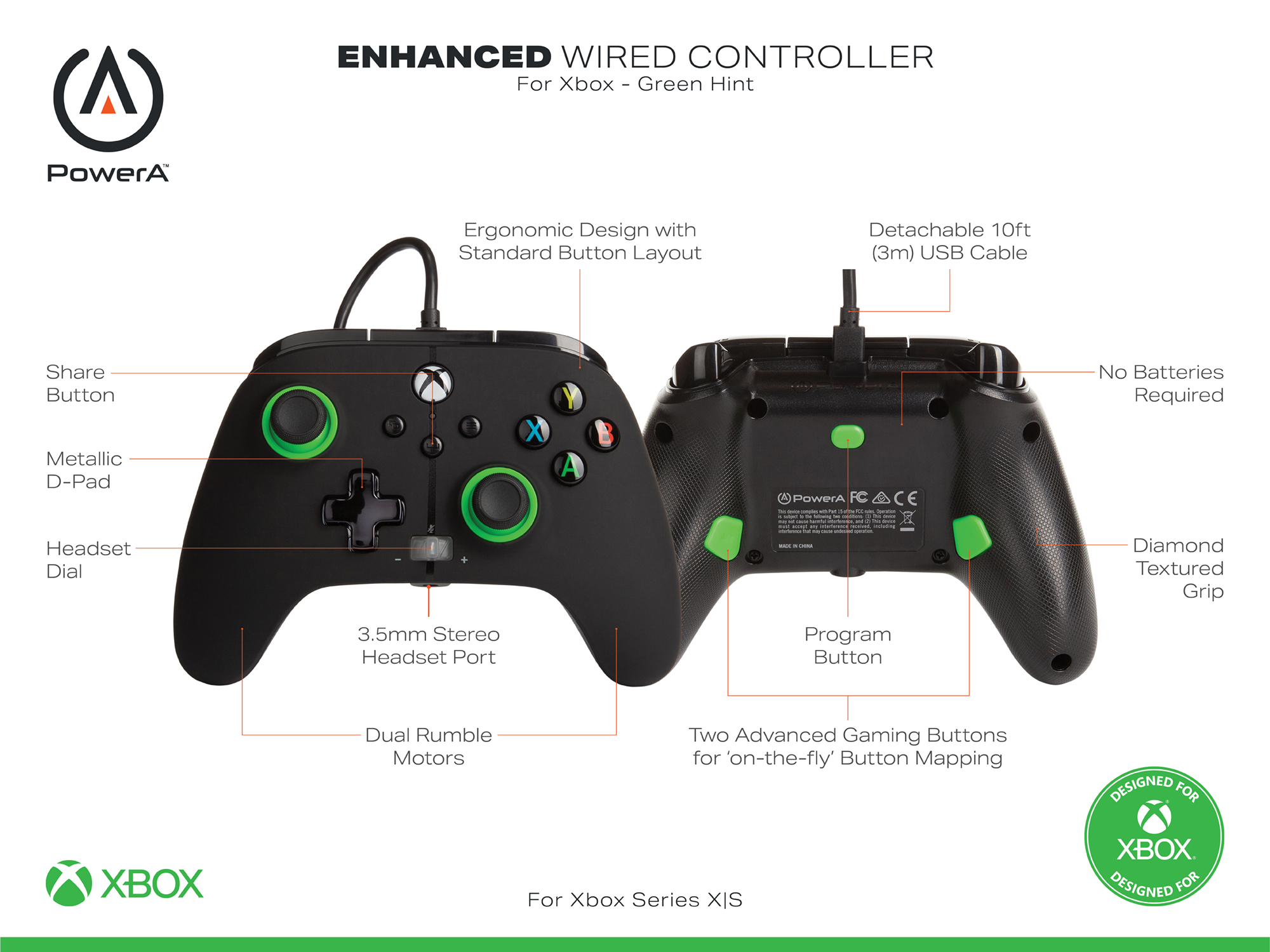 PowerA Enhanced Wired Controller for Xbox Series X|S, Xbox One, Windows 10/11 - Green Hint (Officially Licensed)