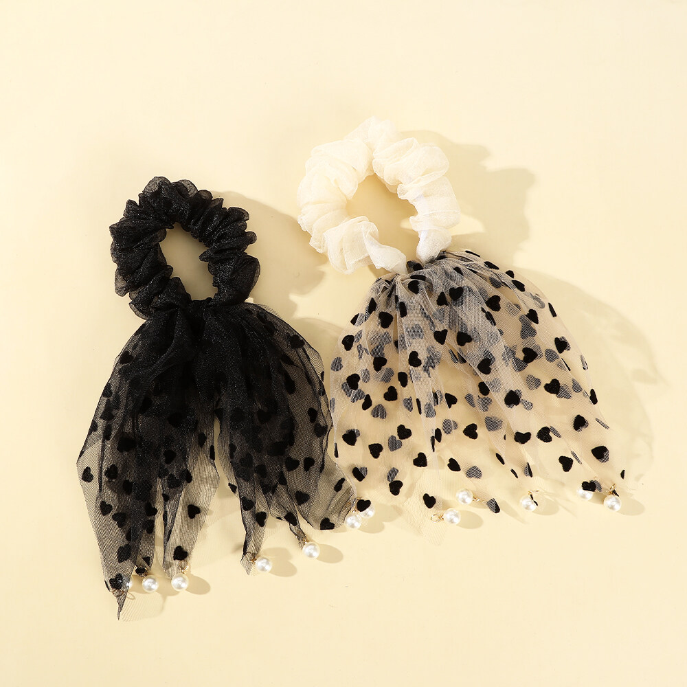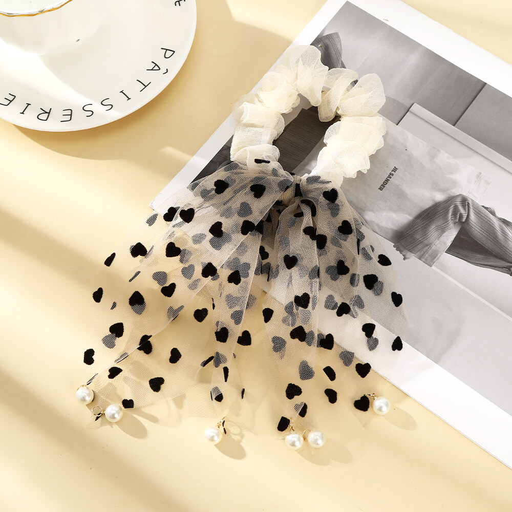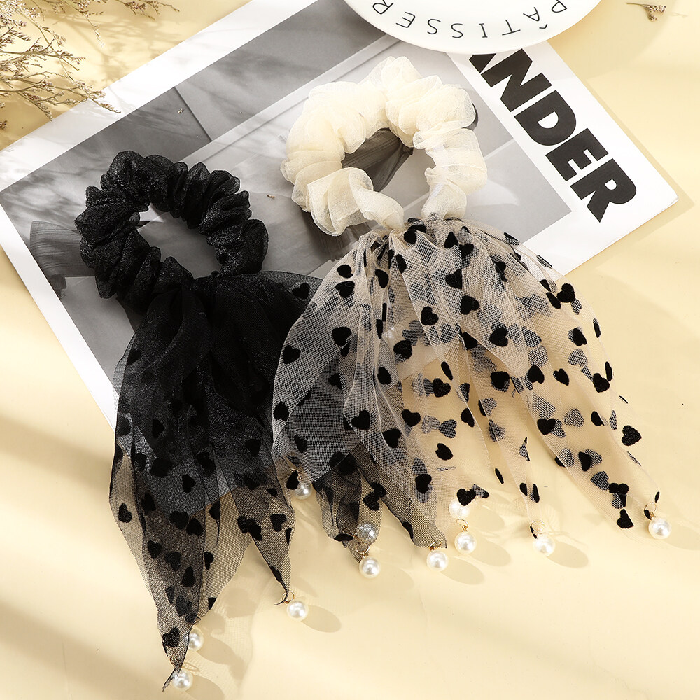 1pcs Fashion Korean Style Hair Ring Simple Casual Love Pearl Lace Large Intestine Hair Rope Hair Accessories
