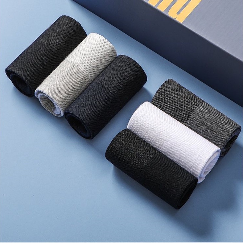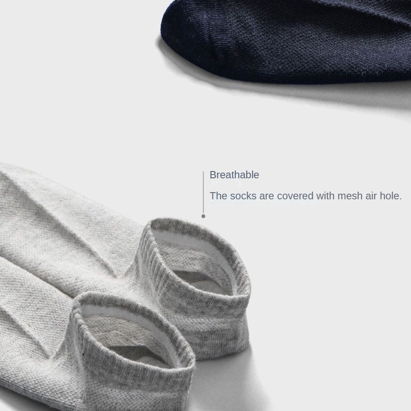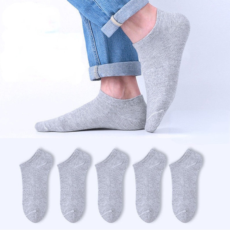 (SG Stock) 5 Pairs Men's Thin Boat Socks Solid Color Business Ankle Socks Sports Breathable Deodorant Socks Low Socks