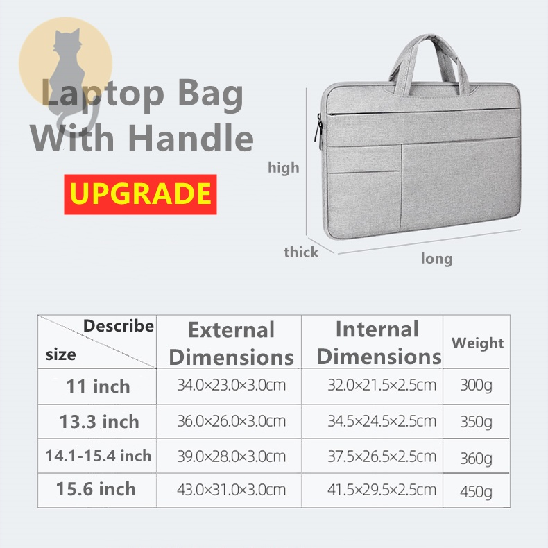 ✅✅✅ Laptop bag with handle upgrade version !!! ✅✅✅ I ship within 24 hours and can receive the goods within 2-3 days !!! ✅✅✅ Free 1 month warranty !!! ✅✅✅ Please Choose a Suitable Laptop Bag Size According to the Length and Width of the Laptop. 【COMBINED CONFIGURATION】Laptop sleeve protect your expensive device from failing and bumping against the other items you carry together.The separate accessories small bag with 1 pockets total that can provide a larger room for power cords, documents, wallet, and keys and many more.It’s nice to keep all your laptop bags can be fixed together like a kangaroo, or sleeve cases can be used separately. 【6-SIDES PROTECTION】Ample cushioning and plush,super soft lining let you know your laptop is in a happy place.In addition to focusing on protecting the front and back of the notebook, laptop cases also adds sidebars that protect the four sides of the laptop, providing a full range of thoughtfulness and protection,that makes the Laptop/ Ultrabook slide in and out easily. 【ODORLESS MATERIAL】Your valuable and beloved laptop wants a decent laptop cover. Inner lining of sleeve bag is filled with plush, and outer layer is made of waterproof fabric, non-Neoprene and polyethylene. carrying case has no irritating odor, rugged and easy to clean. 【QUALITY ZIP AND WATERPROOF】Laptop case zipper slides like butter, make you feel comfortable with hailing laptop around in this. Hand bag zipper opens from side rather than bottom that prevent laptop from failing out. This laptop case is made of spill-resistant material, there is no need to fear rainy days. If you are a commuter, or you are unlucky to rain when you are out, sleeves will offer your laptop all-around protection. SEZI: 11/12 common size: L31.5 x W21.5 x H2.5CM 13.3 inches: L34.5 x W24.5 x H2.5 cm 14.1-15.4 inches: L37.5 x W26.5 x H2.5CM 15.6 inches: L40.5 x W29.5 x H3CM Attached pouch size:L16×W11×H5CM