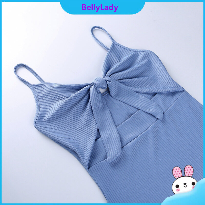 Women Suspender Slim Fit Dress Sexy V-neck Pullover Long Skirt Solid Color Lace-up Hollow Slit Dress