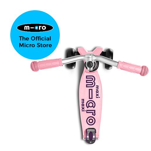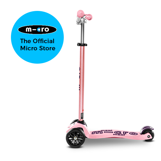 The wide front wheels, a cool chopper handlebar and five trendy colour combinations make the Maxi Micro Deluxe Pro a real eye-catcher. Besides the unique look, the kickboard scores with high quality and practical features. Weight shifting steering gives a distinctive riding experience and at the same time promotes balance and motor skills. The silicone mouldings on the reinforced footplate provide more grip and the two reflectors next to the rear wheel ensure better visibility. This scooter has a height-adjustable handlebar so the Maxi Micro Deluxe Pro grows with the child and will be a long-time companion.