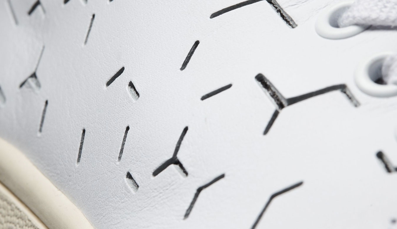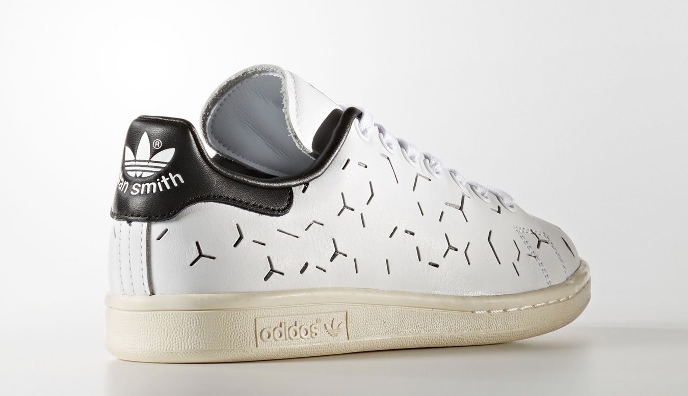 With a modern aesthetic inspired by Scandinavian design, these women's Stan Smith shoes are crafted in leather and feature a geometric laser-cut graphic. Lined with soft leather, they feature a contrast heel tab. A bona fide court champion, the Stan Smith shoe got its name from the biggest tennis star of the '70s. Beloved across the globe, it has a style game that's only improving with age. With a modern aesthetic inspired by Scandinavian design, these women's Stan Smith shoes are crafted in leather and feature a crisp laser-cut geometric graphic. Lined with soft leather, they feature a contrast heel tab and rubber cupsole. Debossed foil tongue label Synthetic leather lining. Enjoy the comfort and performance of OrthoLite® sockliner. Vintage leather heel patch with debossed Trefoil logo. Rubber cupsole
