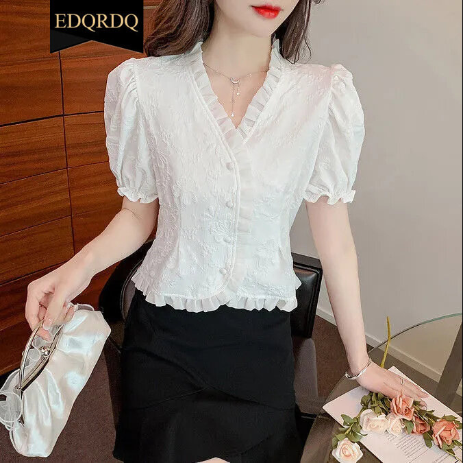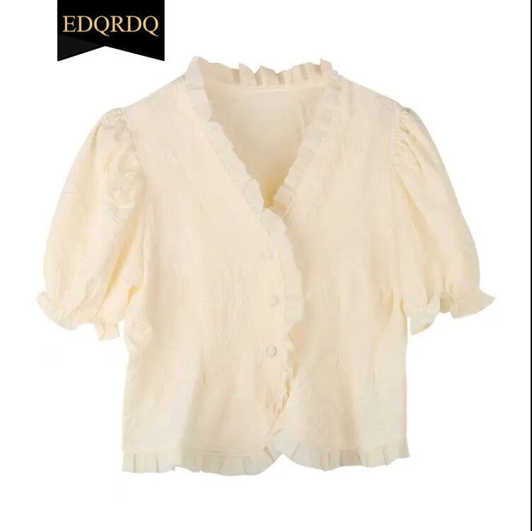 EDQRDQ Women Victorian Puff Sleeve Tops Vintage Ruffled Button Down Blouse