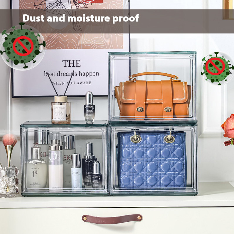 ?Ready Stocks in Singapore✈️ Ship within 2 daysDetails:Material: PET AcrylicSize: L27xW18xH22cmColor: Transparent white,Transparent greenFeatures:-Magnetic design, easy to open & close.-Stackable design, save space.-3 layer movable partition, easy to adjust and install.-Solid and Durable Material.-Dust and moisture proof.-Multi-purpose storage for any space.