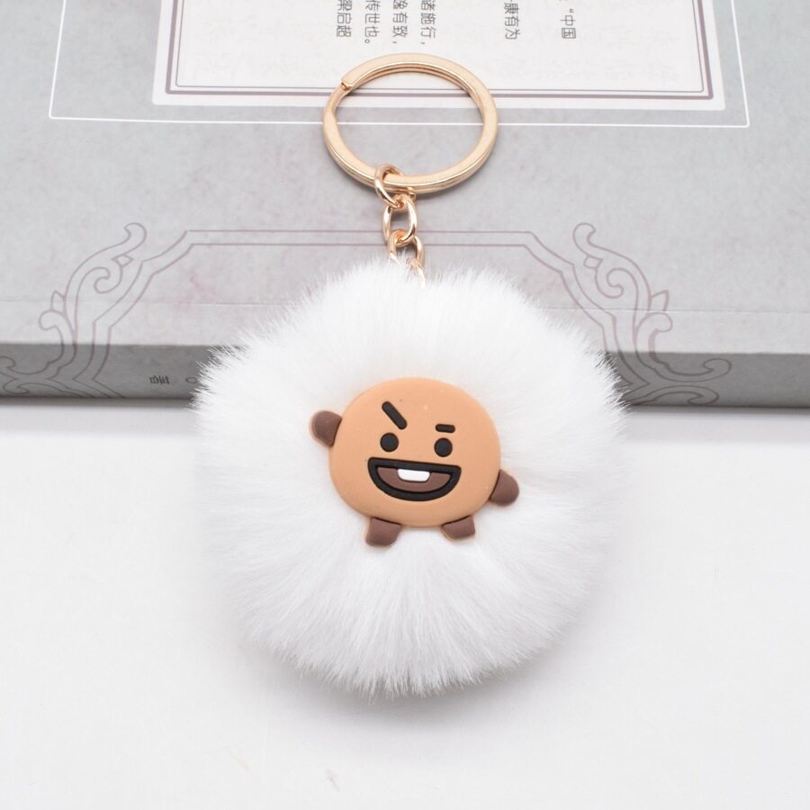 BTS BT21 Commodity Official Accessories Cell Phone Ornaments Hairball Car Keychain Cute Soft Toy