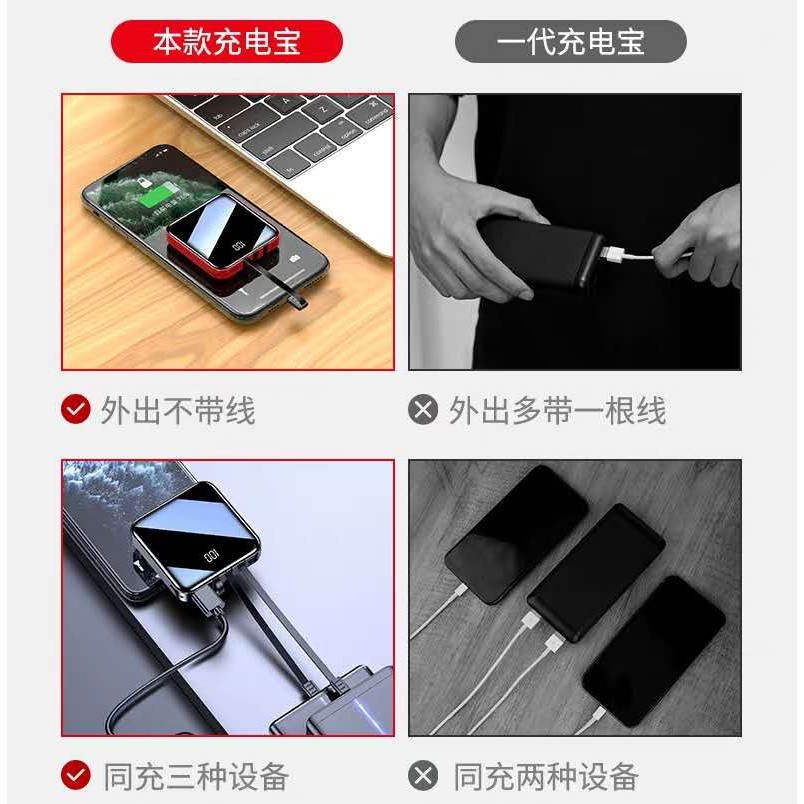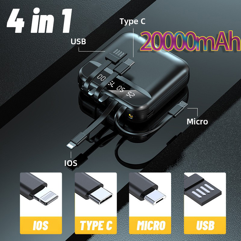 【SG READY STOCK】Mini power bank 20000mah Latest Fast Charging Built-in 3 Cables Digital Display Powerbank Portable External Battery Pack 快充充电宝