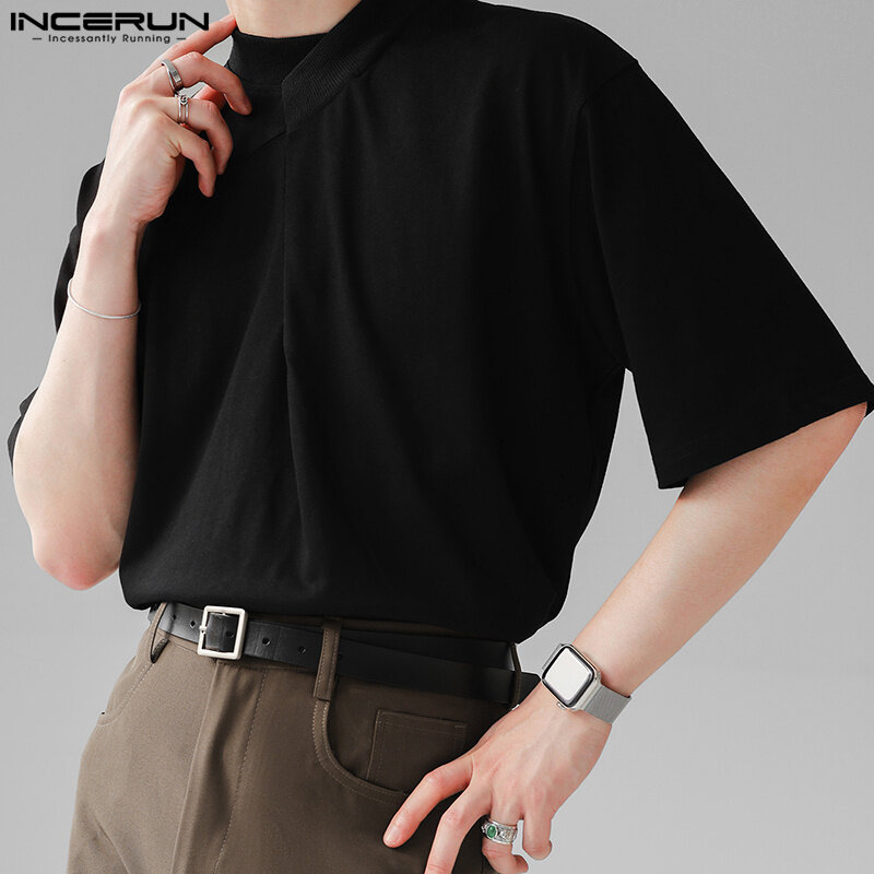 INCERUN Mens Short Sleeve Casual Loose T Shirts Solid Pullover Tops Blouse (Korean Style)