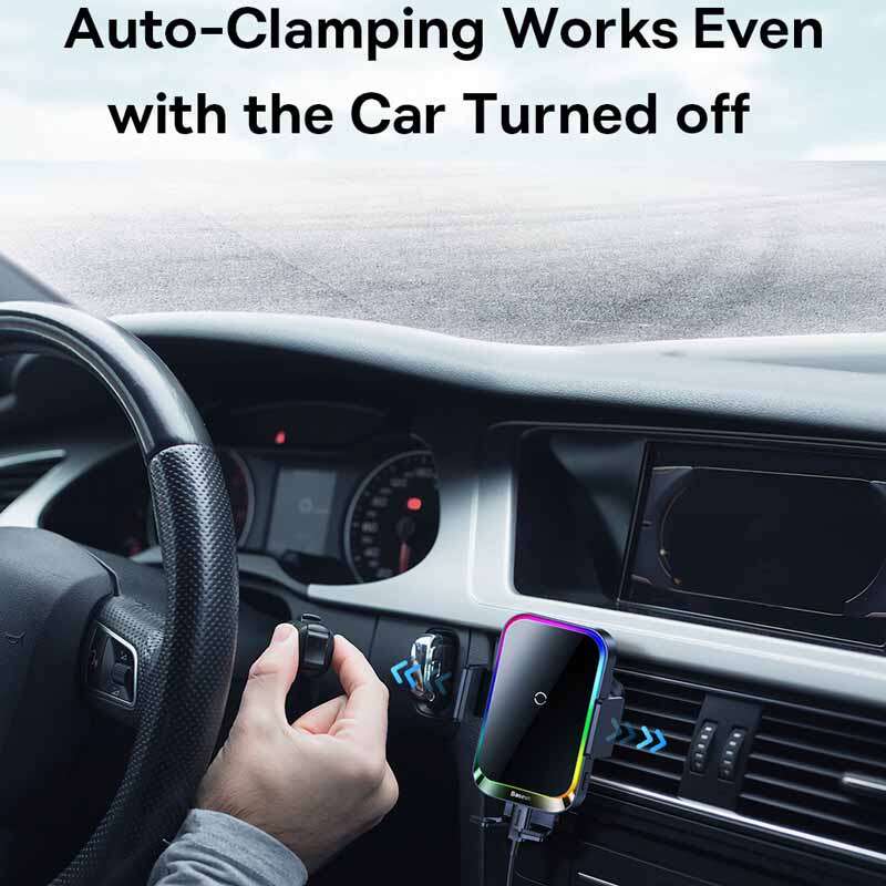Baseus 15W Wireless Charging Car Phone Holder Infrared QI Multi-color Gradient Light Phone Charger for iPhone 14 13 12 Xiaomi Samsung Mount Fast Wireless Charger Button